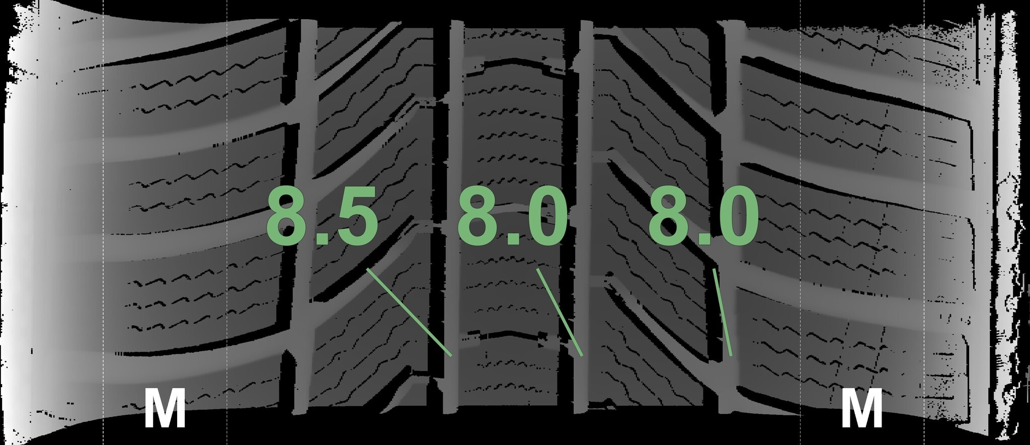 Die gemessenen Profiltiefen und Details zu den Felgen sind oben abgebildet.