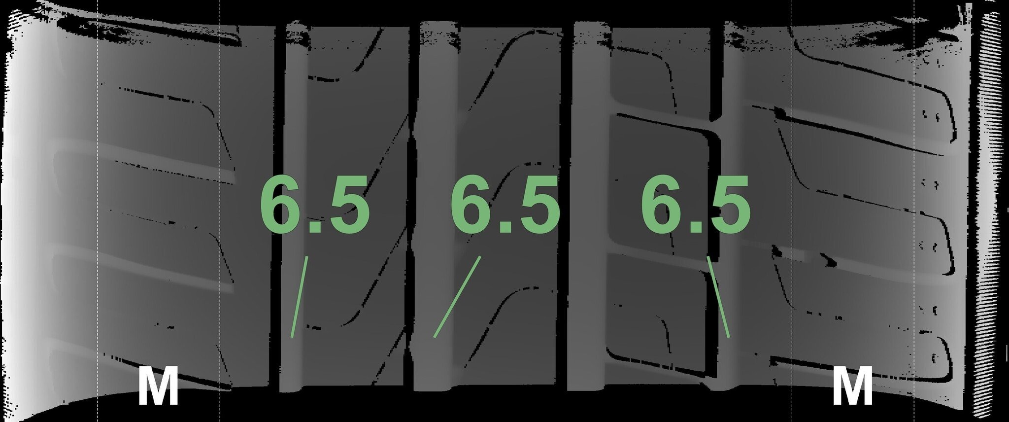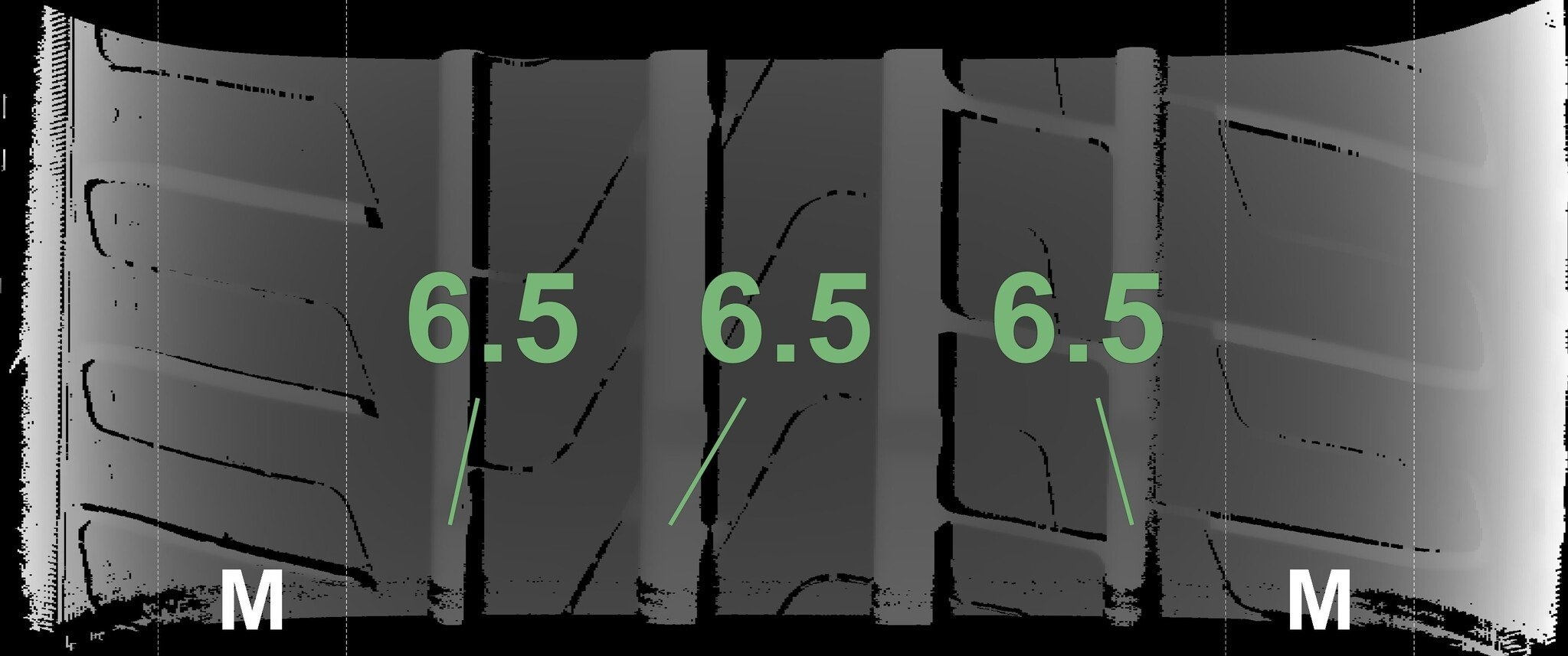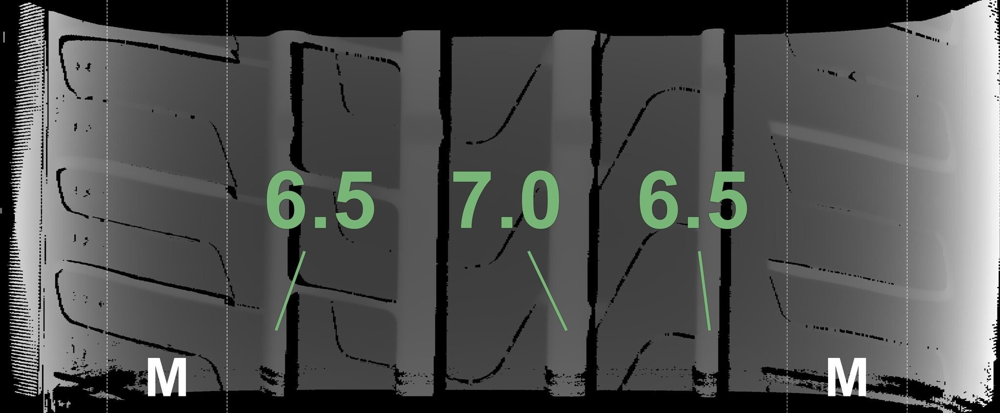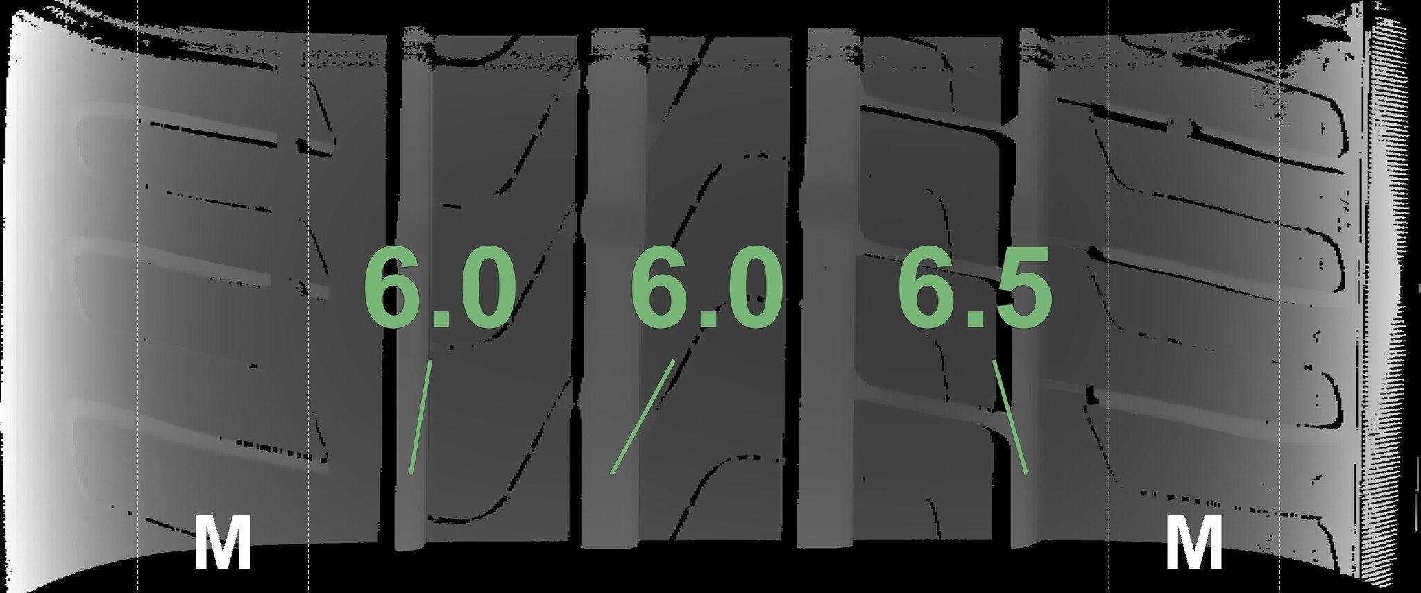 Die gemessenen Profiltiefen und die Details der Felgen sind oben aufgeführt.