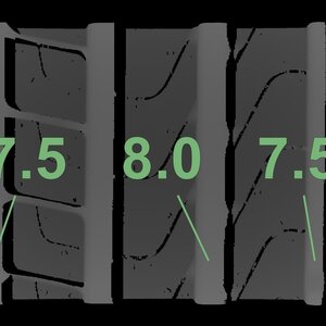 Die gemessenen Profiltiefen und Details zu den Felgen sind oben abgebildet.