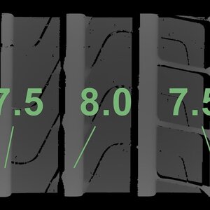 | Zustand | Profiltiefe | DOT | Vorderachse Rechts | Neu | 7,5 mm | 5021 |