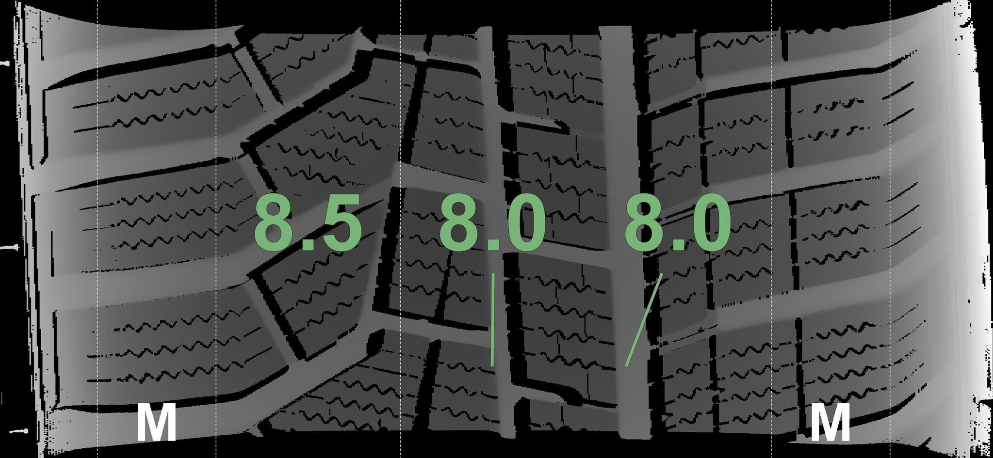 Die gemessenen Profiltiefen und Details zu den Felgen sind oben abgebildet.