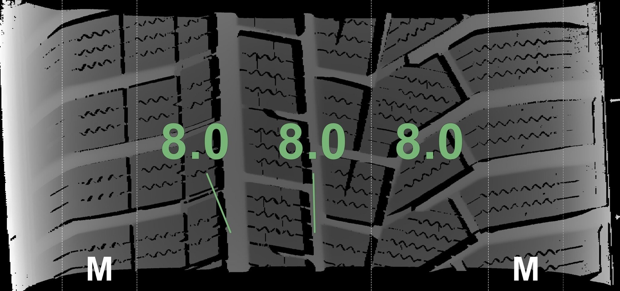 | Zustand | Profiltiefe | DOT | Vorderachse Links | Demobolzen noch sichtbar | 8,0 mm | 2323 |