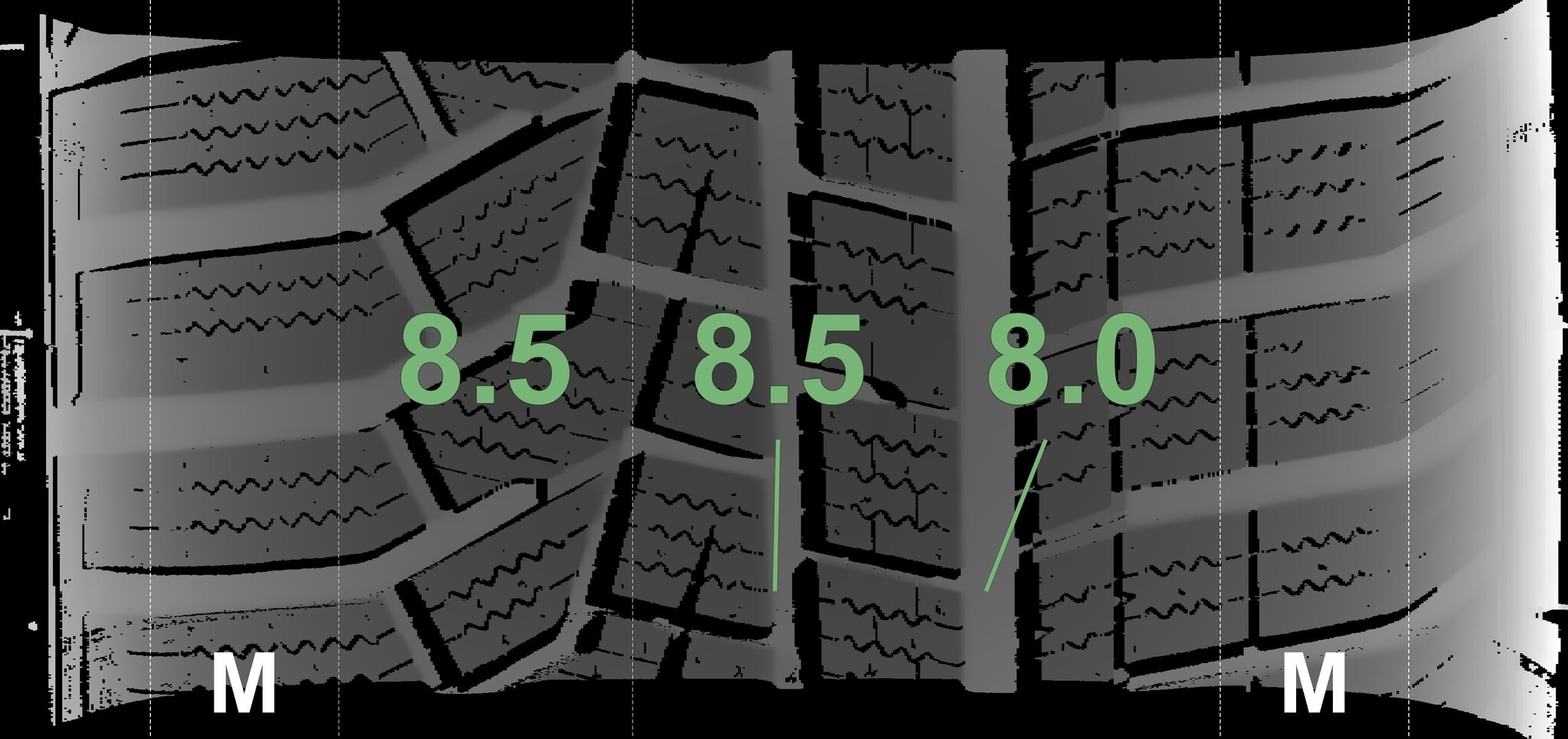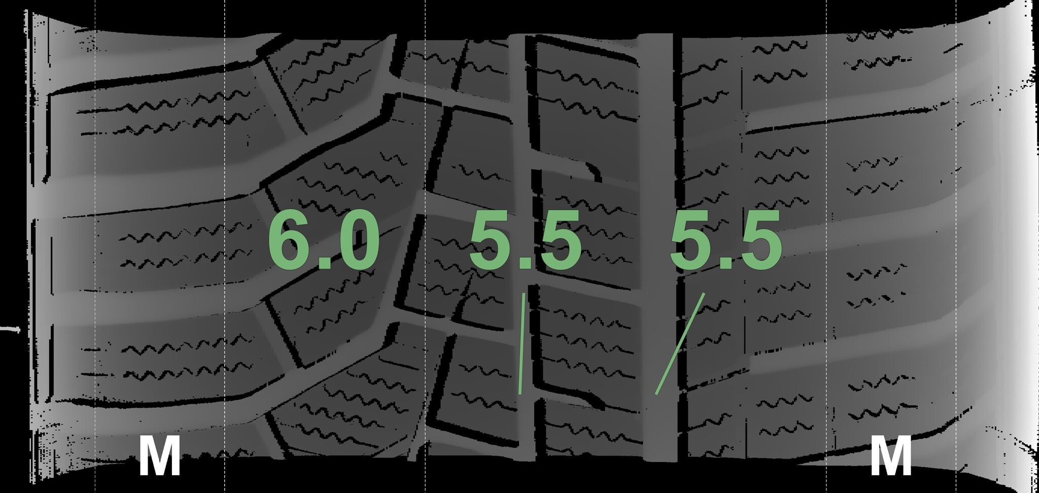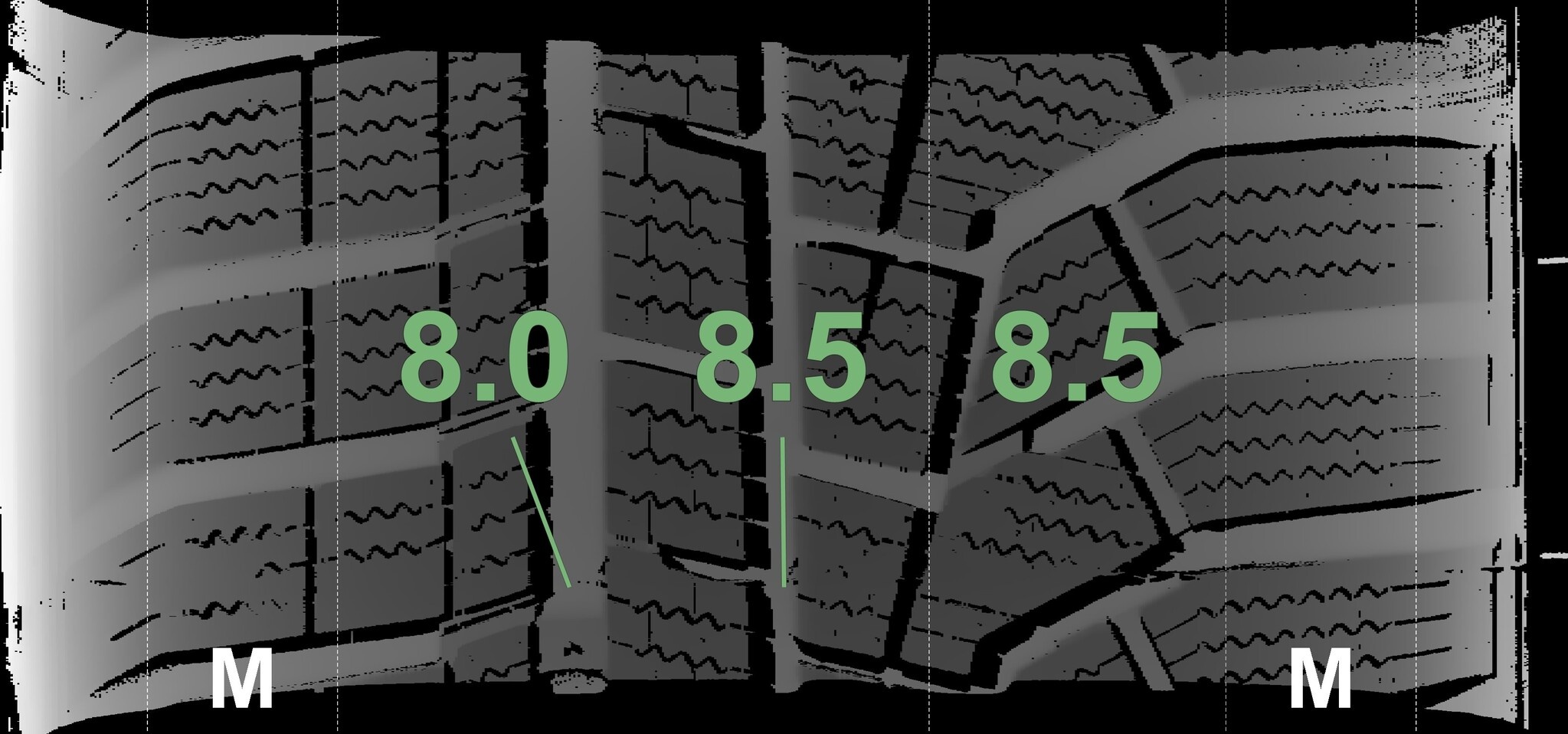 Die gemessenen Profiltiefen und Details zu den Felgen sind oben abgebildet.