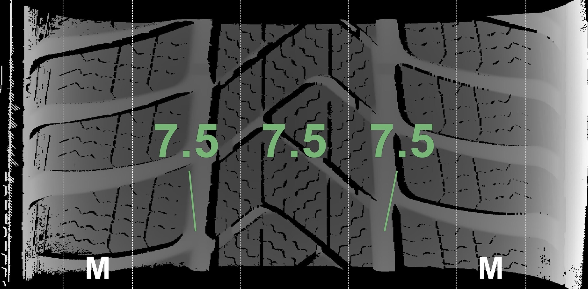 | Zustand | Profiltiefe | DOT | Hinterachse Rechts | Neu | 7,5 mm | 2821 |