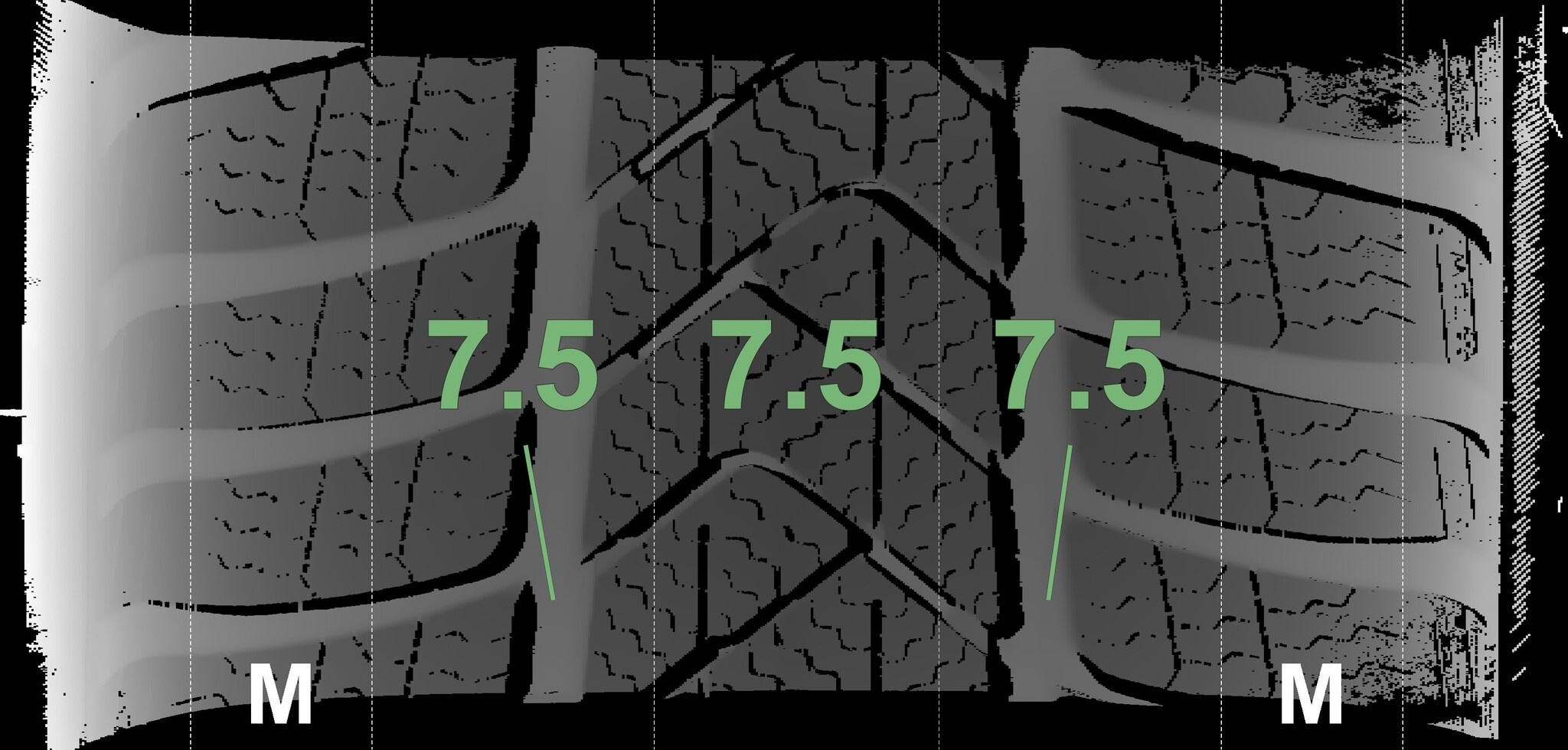 | Zustand | Profiltiefe | DOT | Hinterachse Links | Neu | 7,5 mm | 2821 |