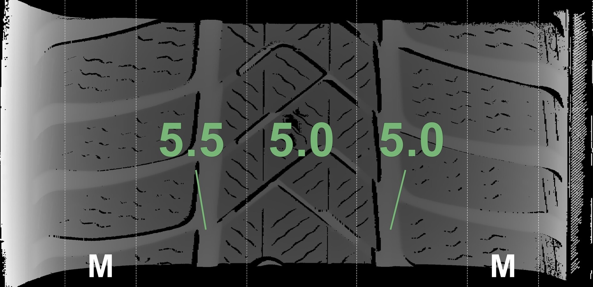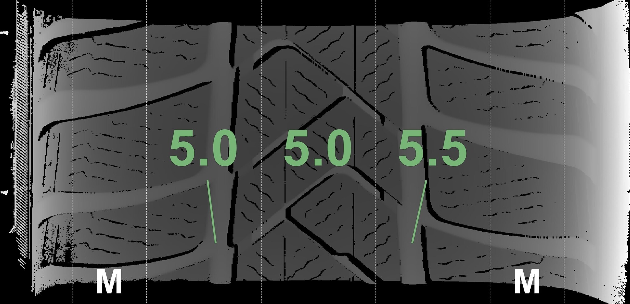 Die gemessenen Profiltiefen und Details zu den Felgen sind oben abgebildet.