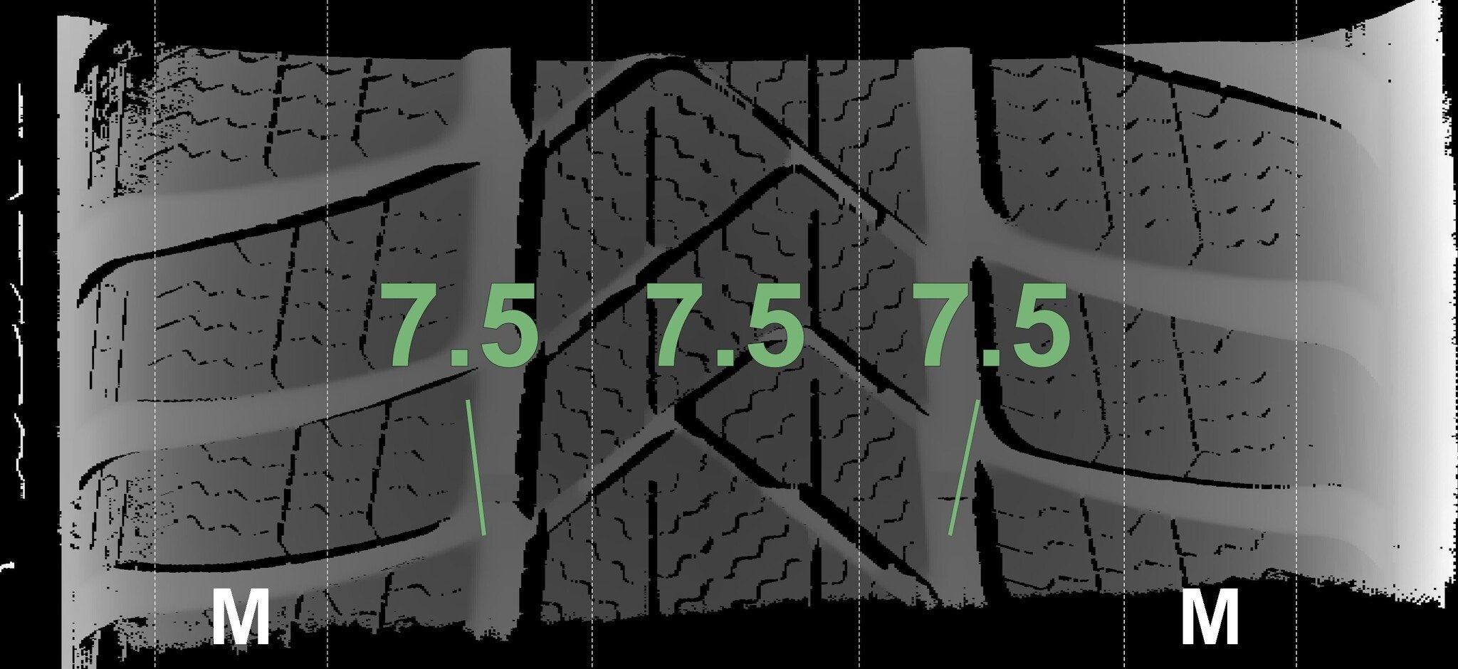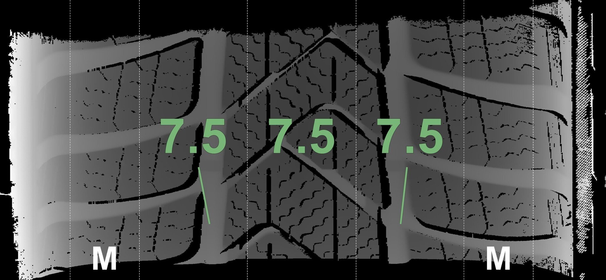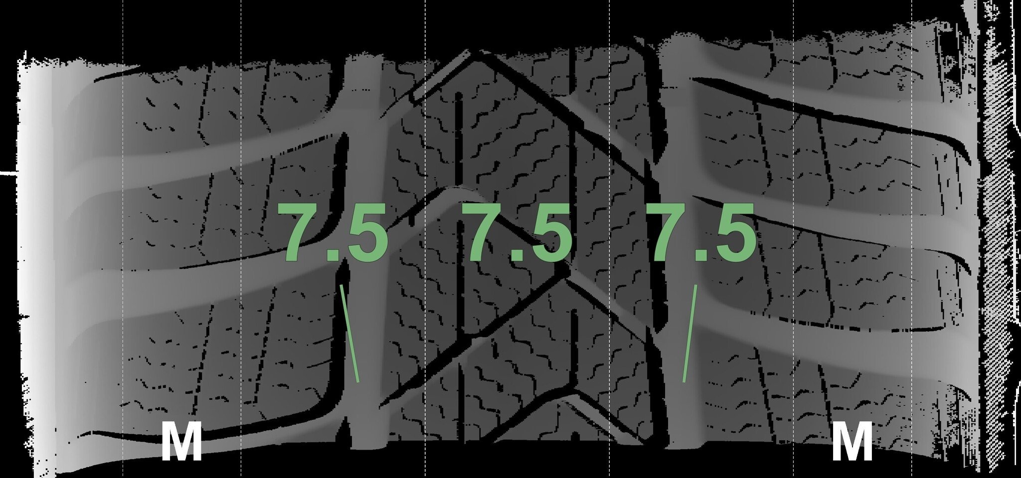 Zustand | Profiltiefe | DOT | Hinterachse Rechts | Neu | 7,5 mm | 2821 |