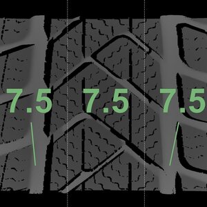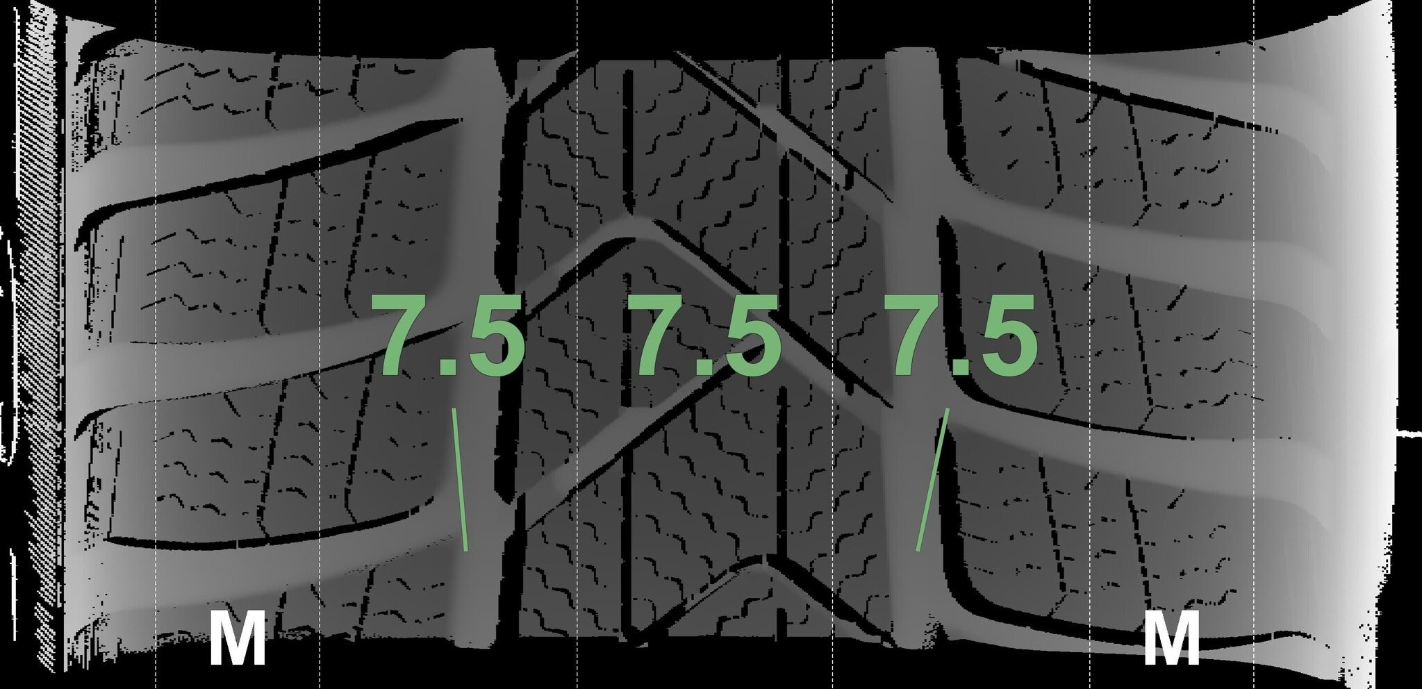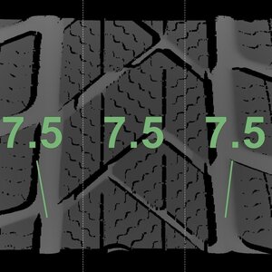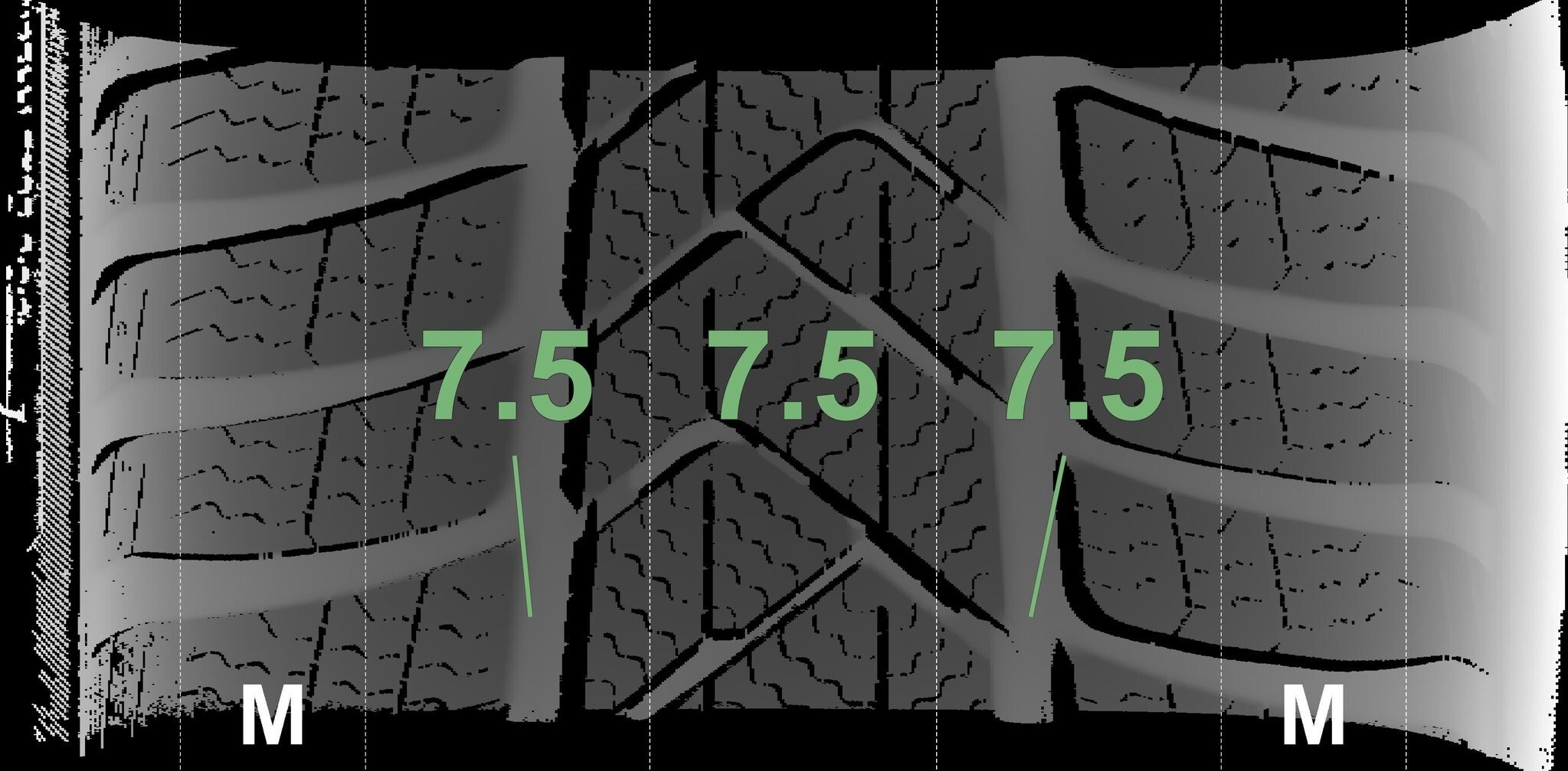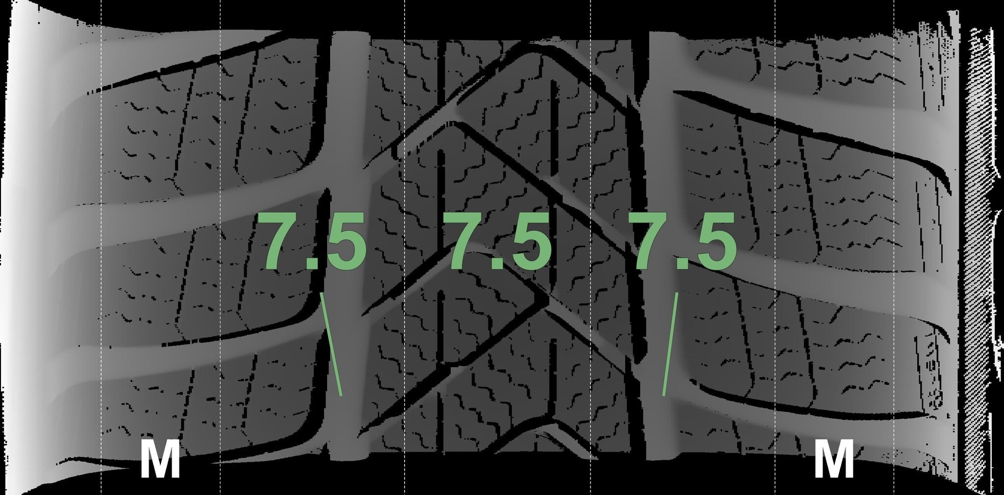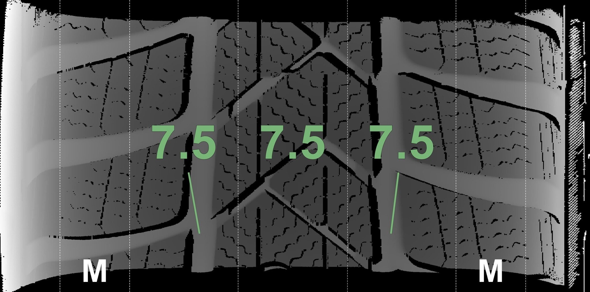 | Zustand | Profiltiefe | DOT | Vorderachse Links | Neu | 7,5 mm | 1922 |