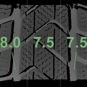 | Zustand | Profiltiefe | DOT | Vorderachse Rechts | Neu | 7.5 mm | 1922 |