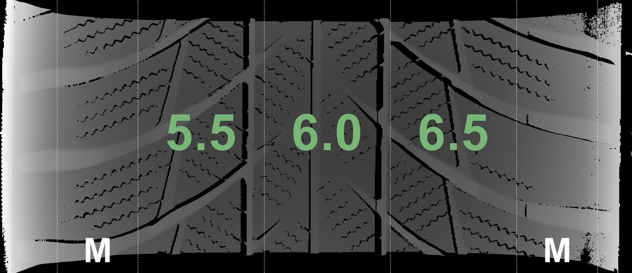Die gemessenen Profiltiefen und Details zu den Felgen sind oben abgebildet.