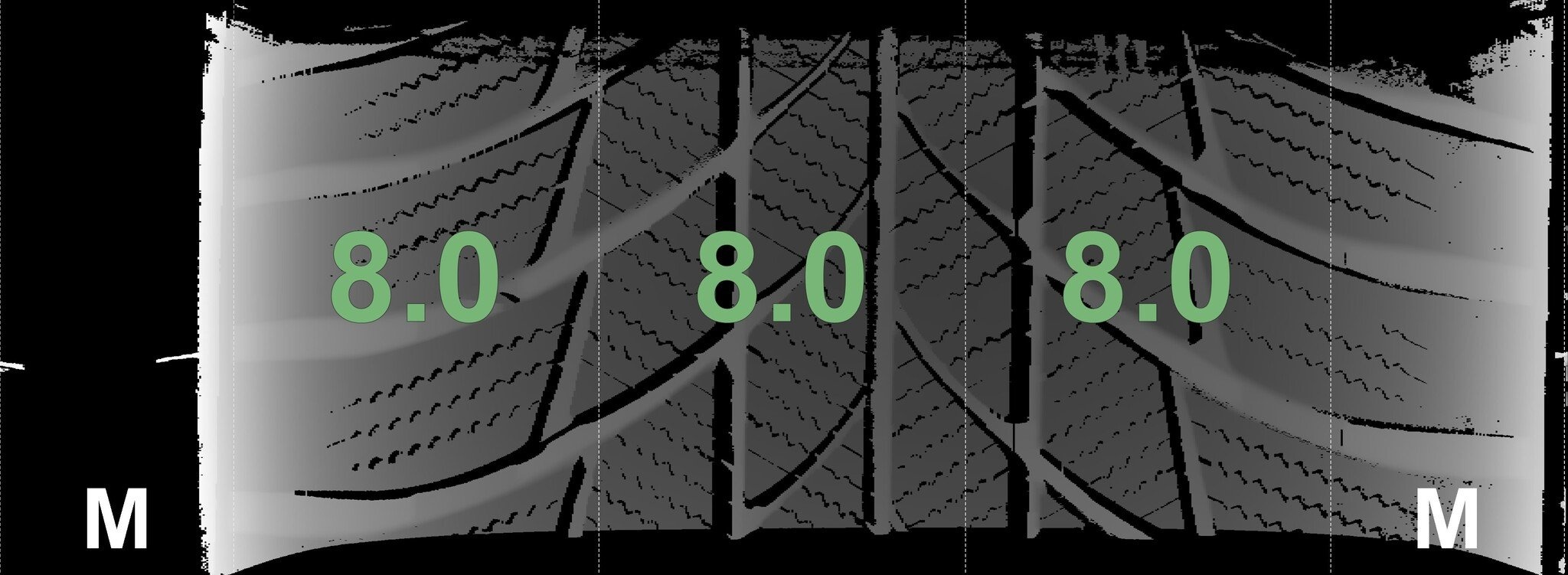 | Zustand | Profiltiefe | DOT | Hinterachse Rechts | Neu | 8.0 mm | 4721 |