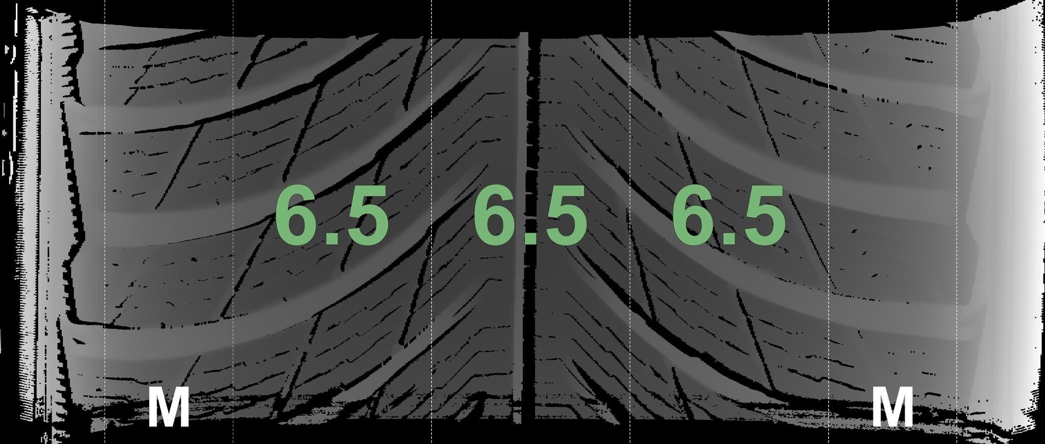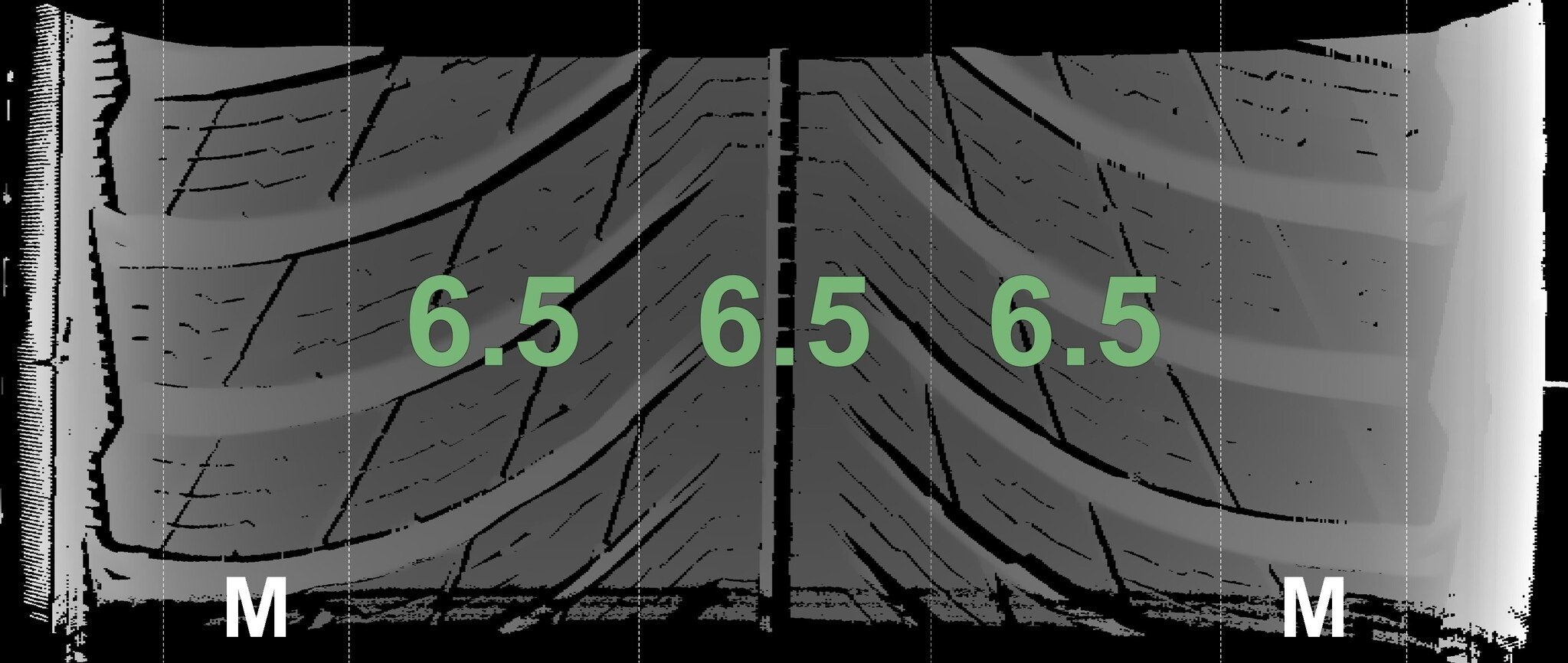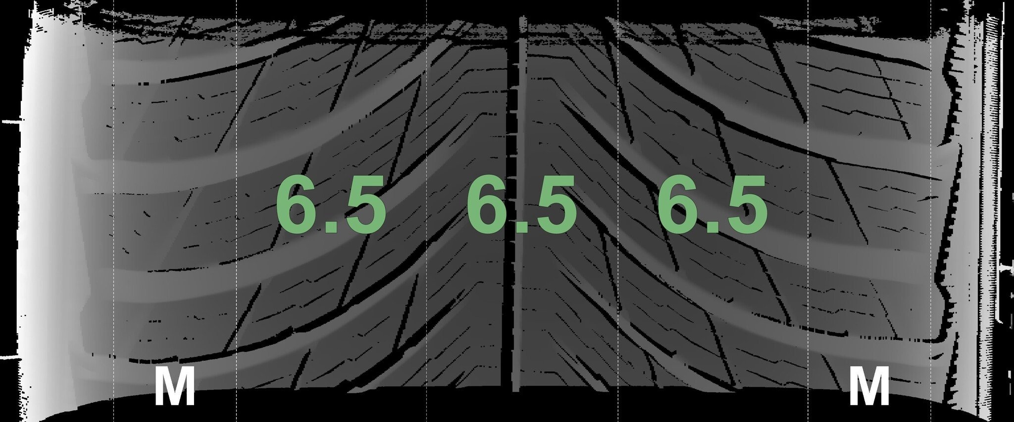 | Zustand | Profiltiefe | DOT | Hinterachse Rechts | Gebraucht | 6.5 mm | 0319 |