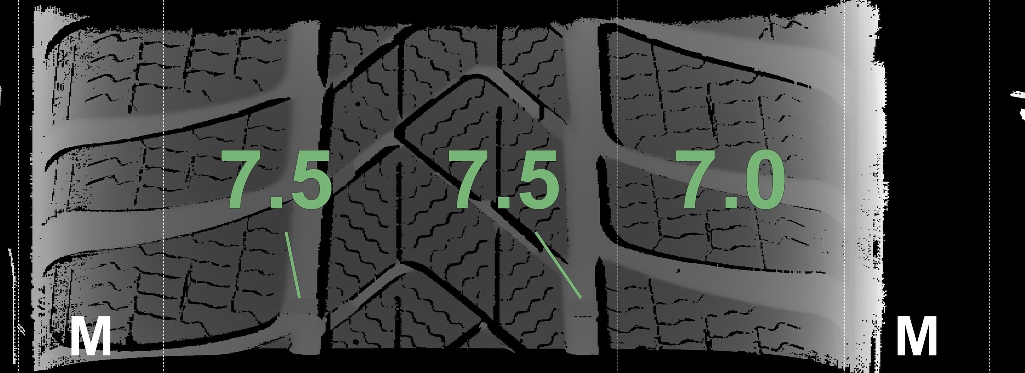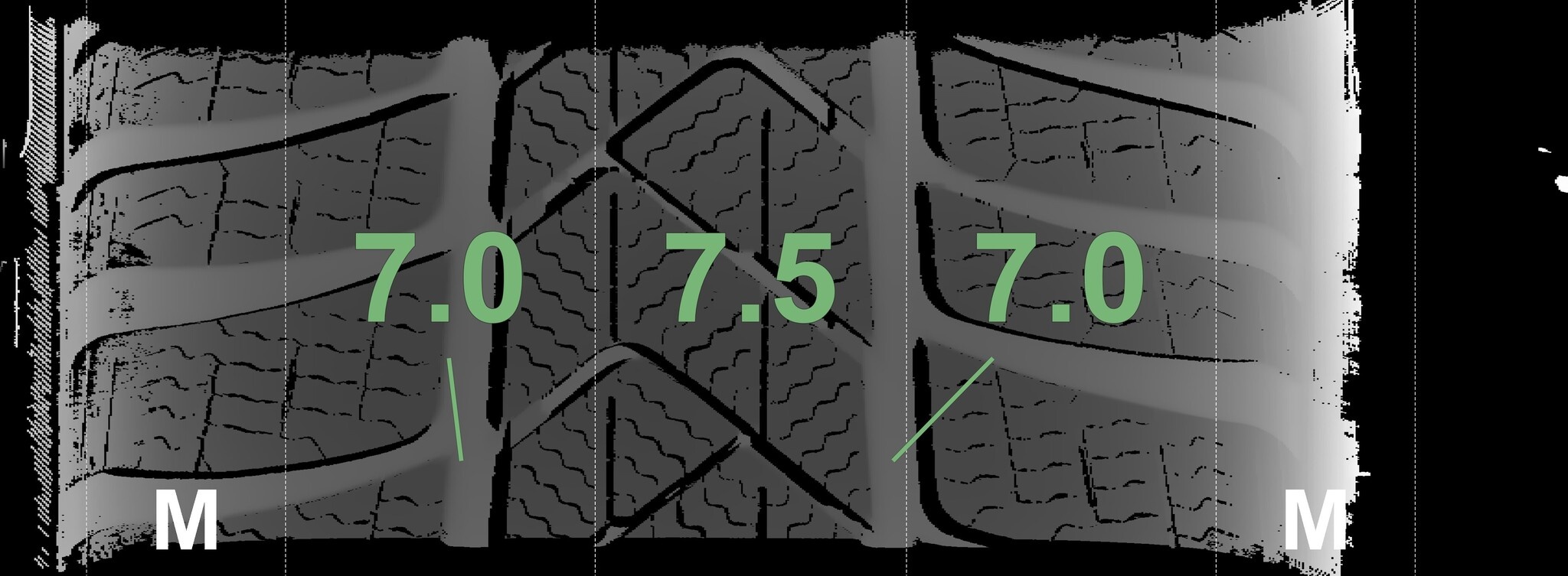 Die gemessenen Profiltiefen und Details zu den Felgen sind oben abgebildet.