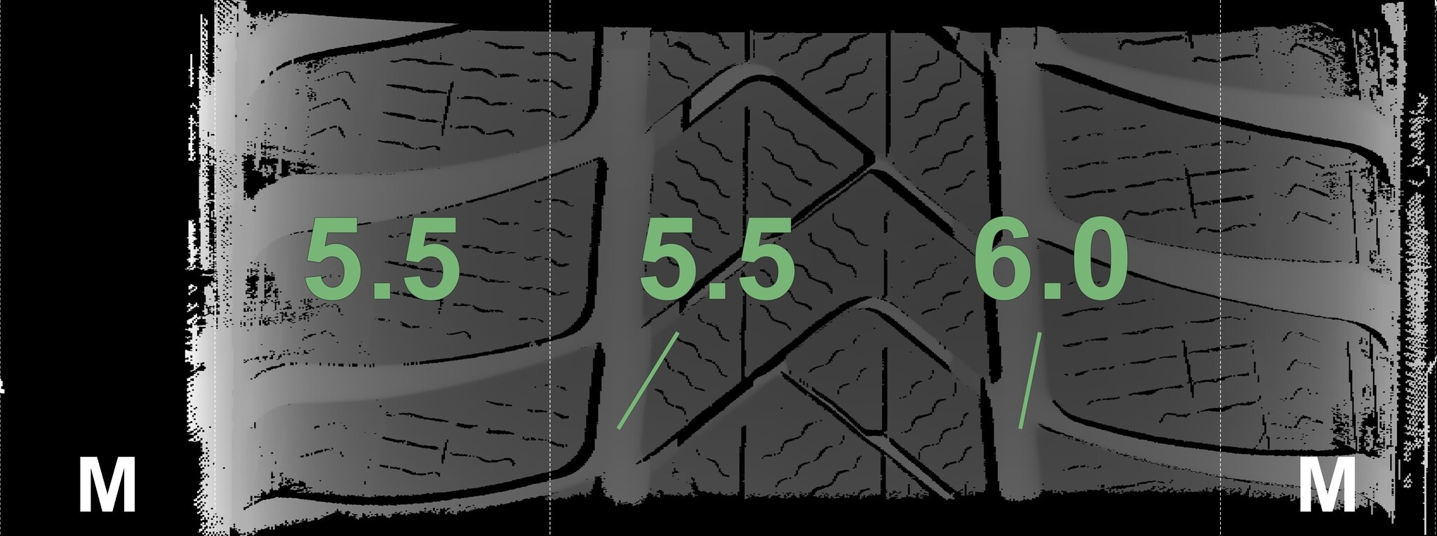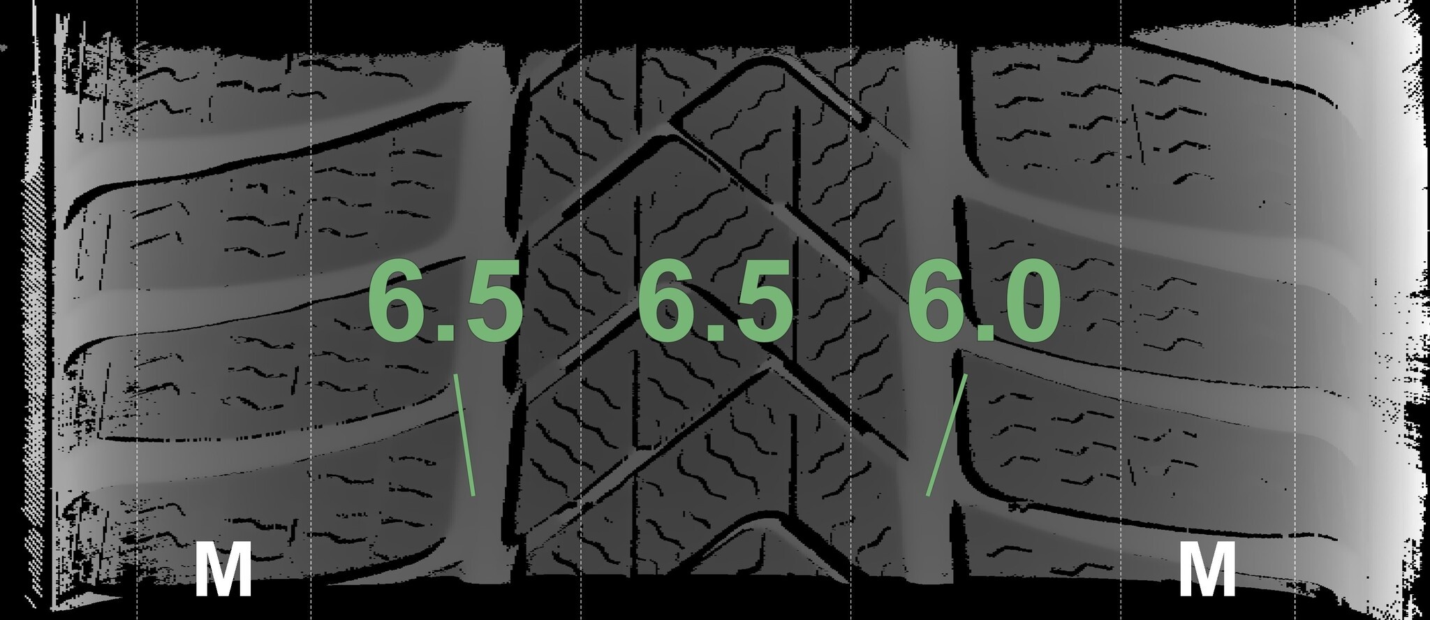 Die gemessenen Profiltiefen und Details zu den Felgen sind oben abgebildet.