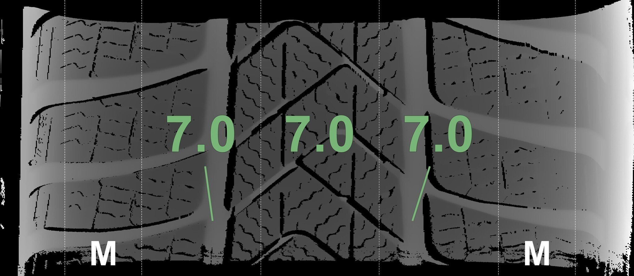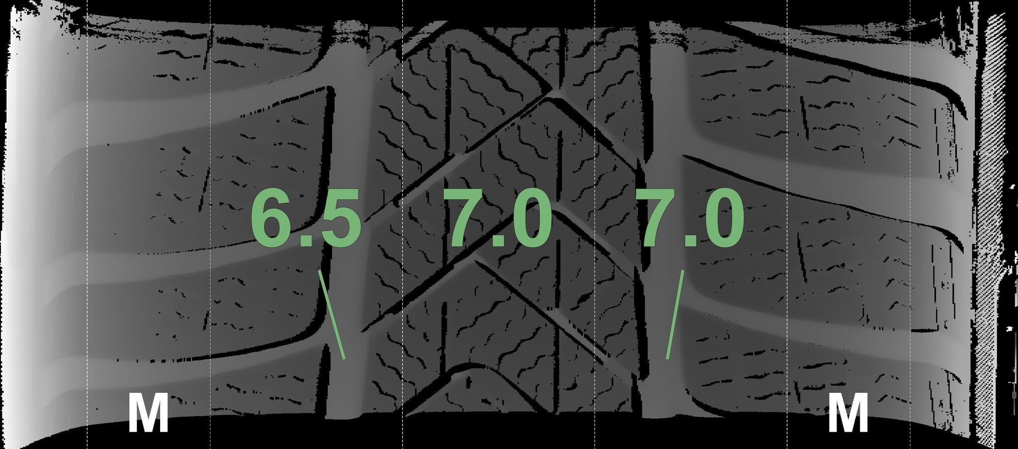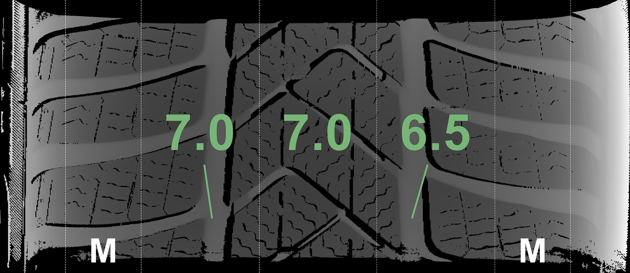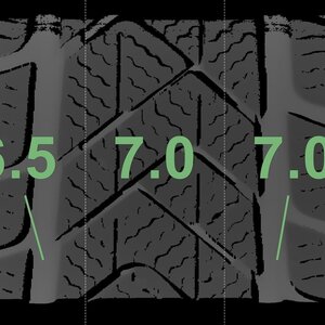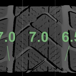 Die gemessenen Profiltiefen und die Details der Felgen sind oben dargestellt.