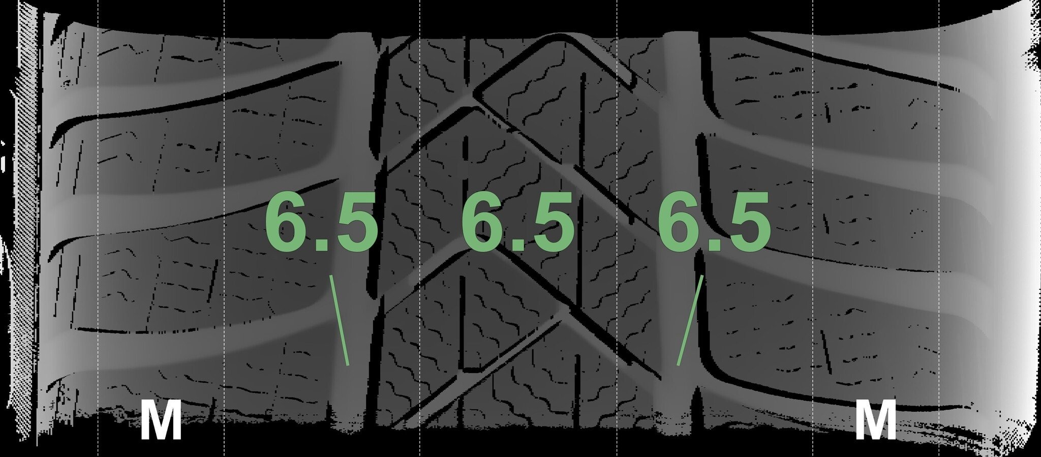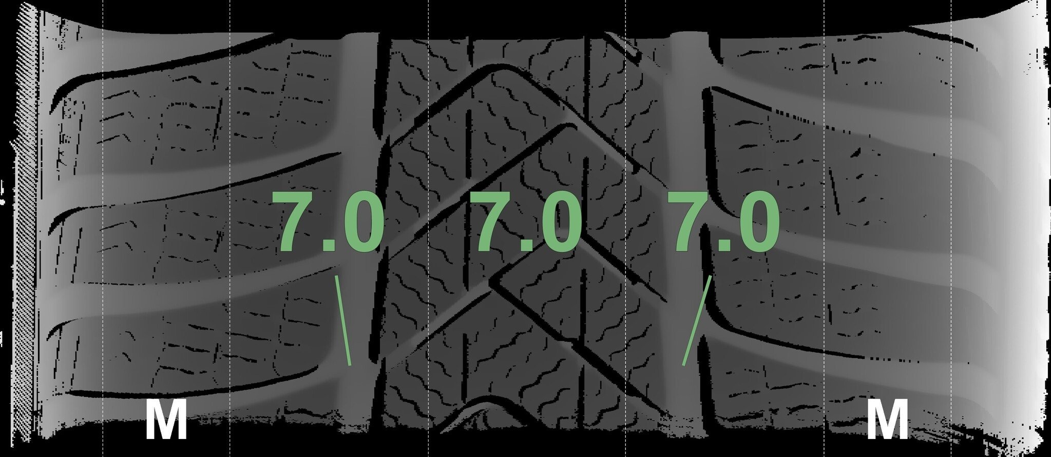 Die gemessenen Profiltiefen und die Details der Felgen sind oben angezeigt.