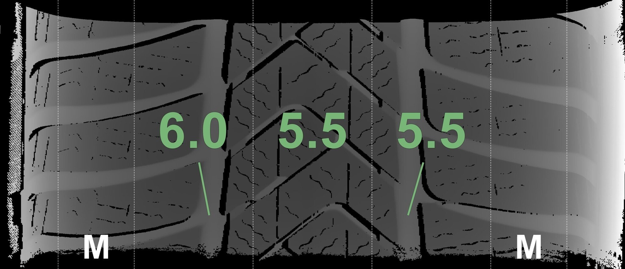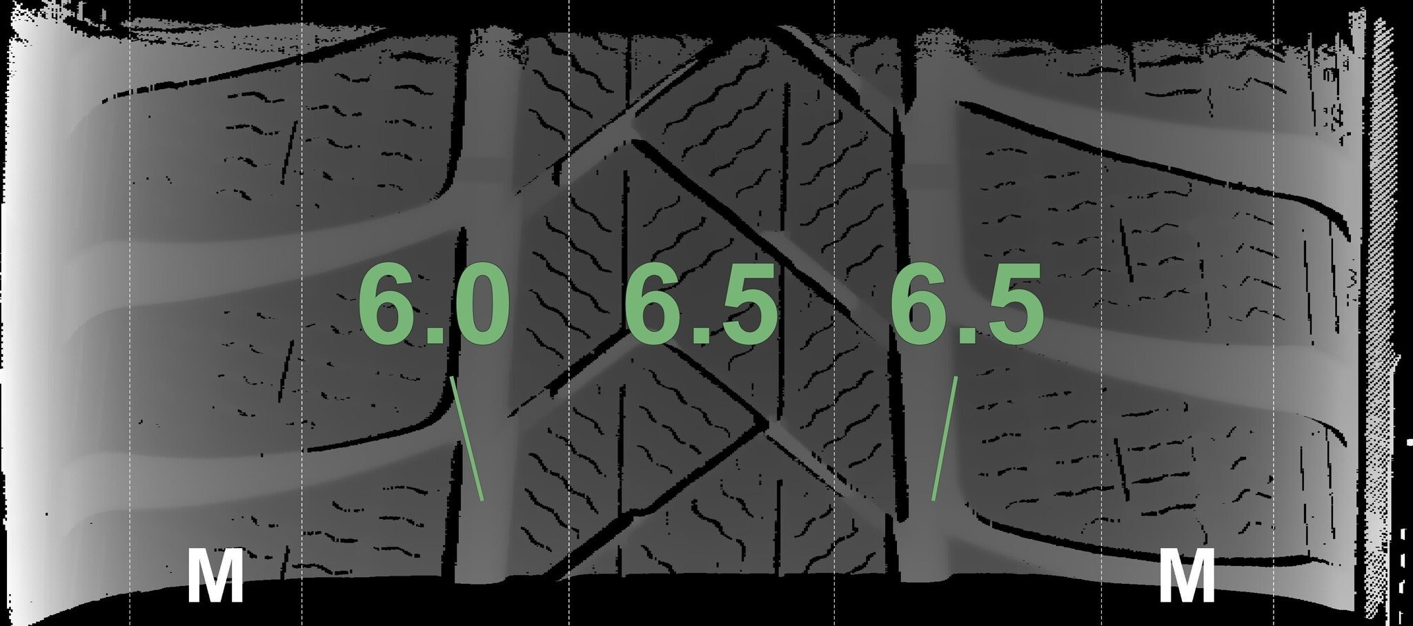 Die gemessenen Profiltiefen und die Details der Felgen sind oben aufgeführt.