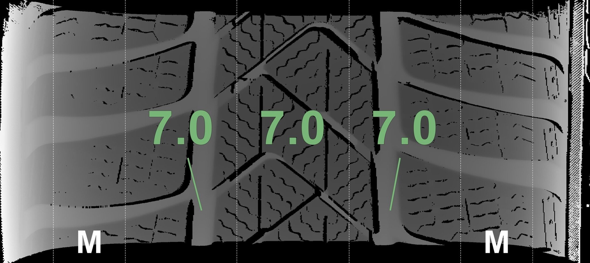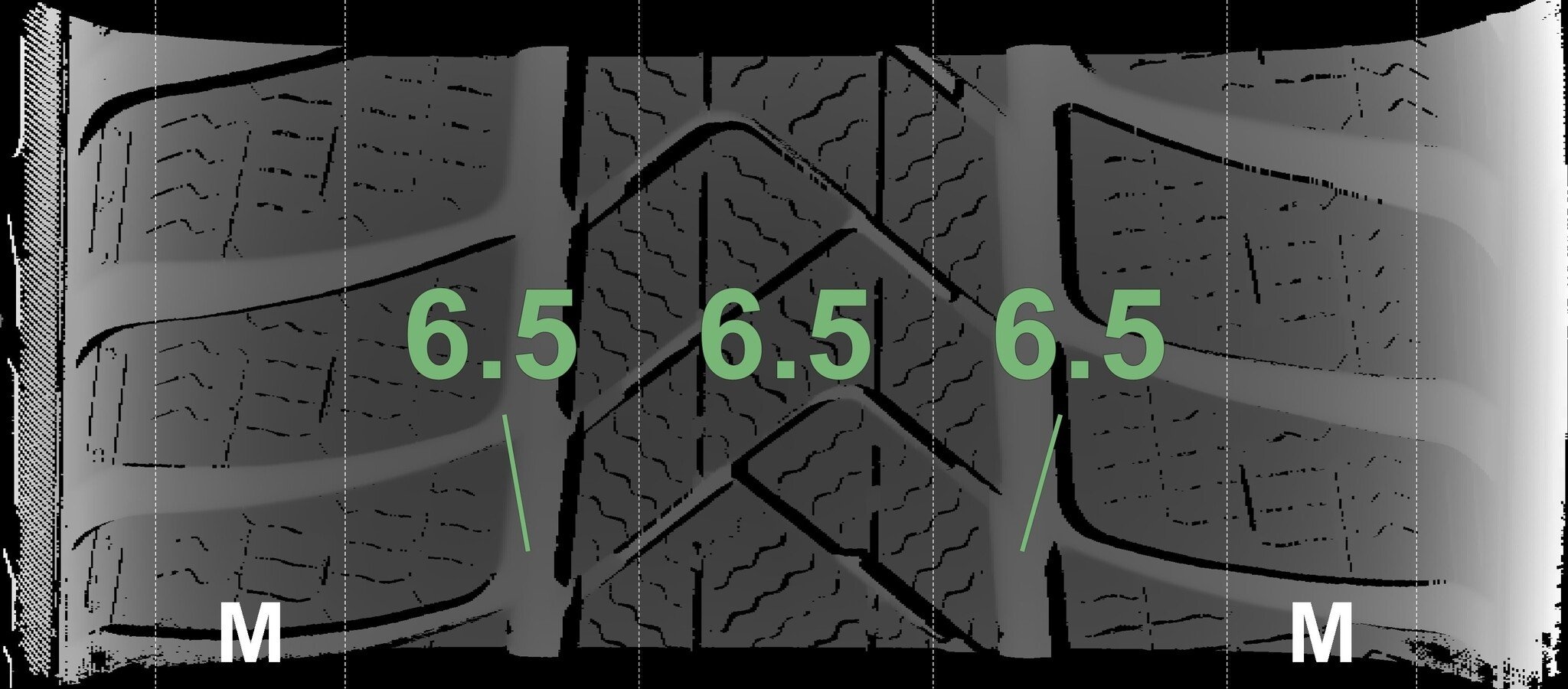 Die gemessenen Profiltiefen und die Details der Felgen sind oben dargestellt.
