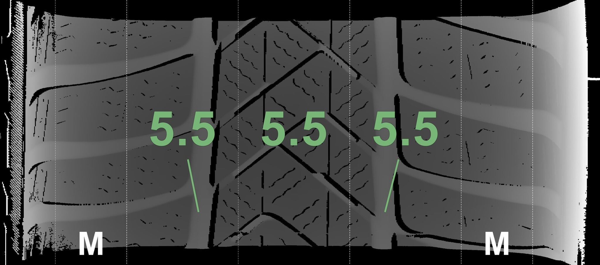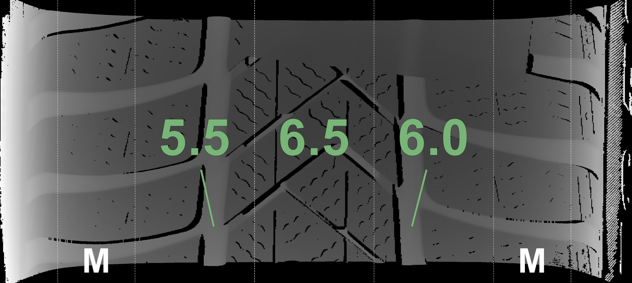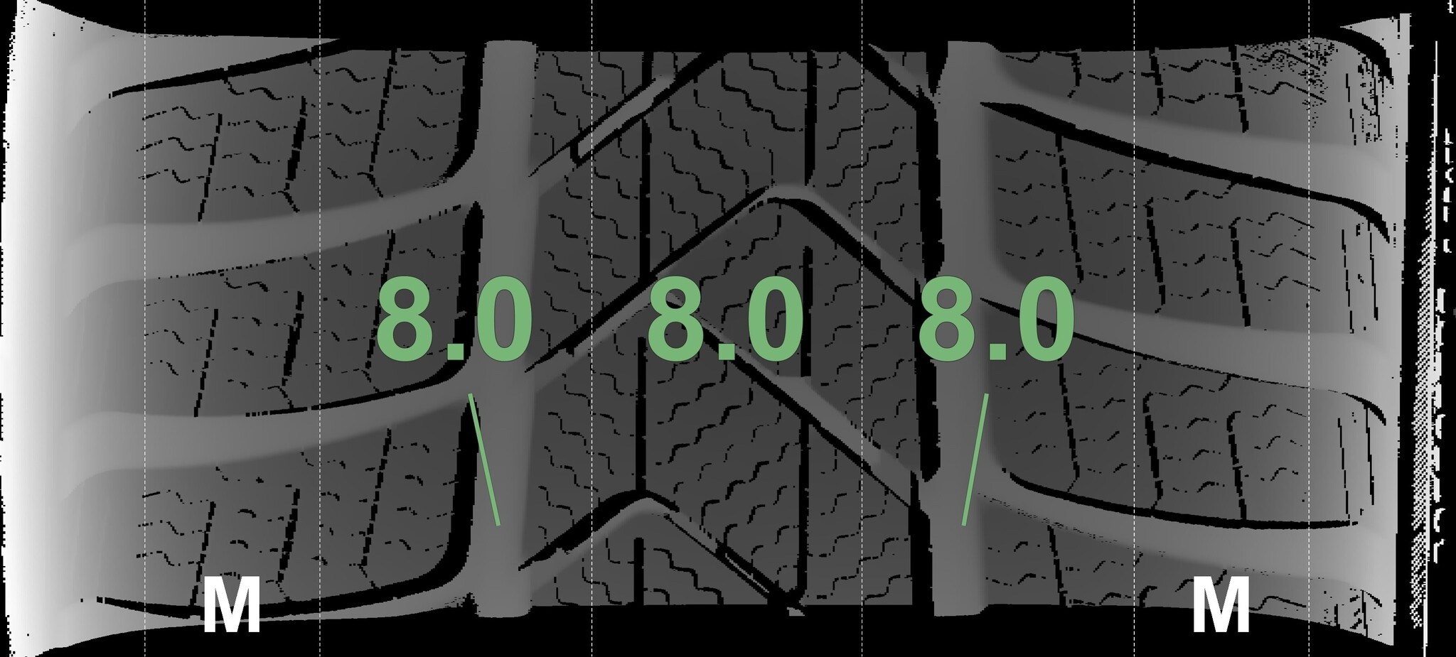 Die gemessenen Profiltiefen und die Details der Felgen sind oben angezeigt.