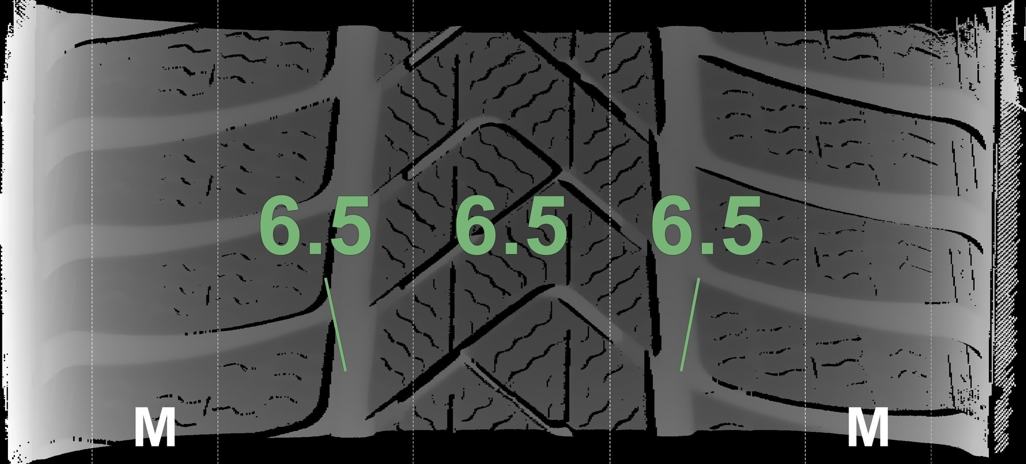 | Zustand | Profiltiefe | DOT | Vorderachse Links | Gebraucht | 6.5 mm | 2319 |