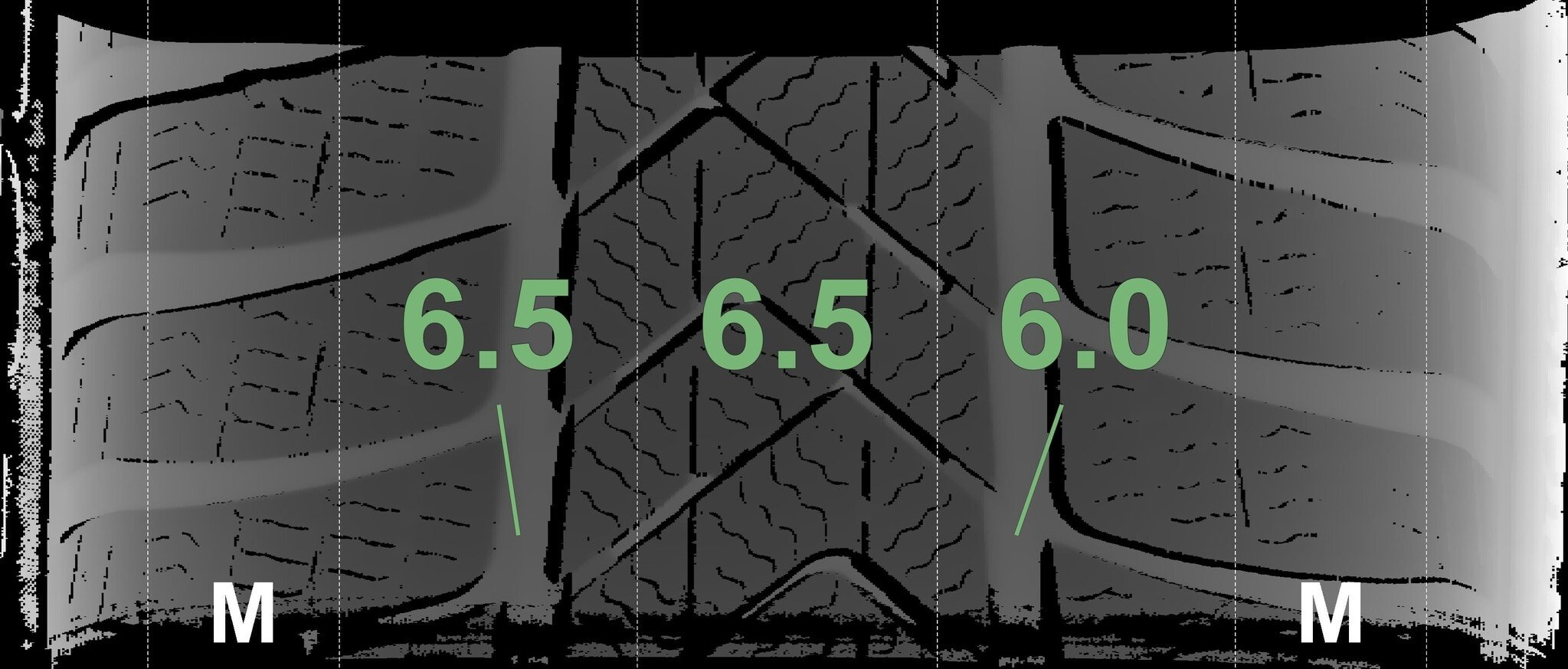 | Zustand | Profiltiefe | DOT | Vorderachse Links | Gebraucht | 6,5 mm | 3621 |
