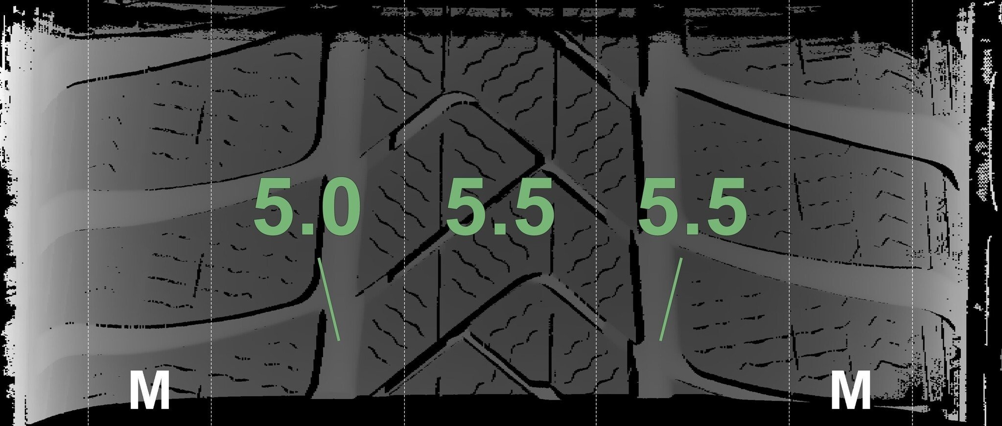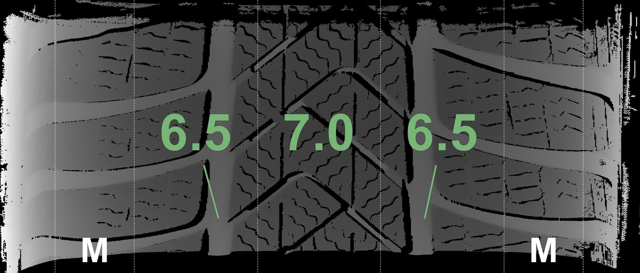 Die gemessenen Profiltiefen und die Details der Felgen sind oben dargestellt.