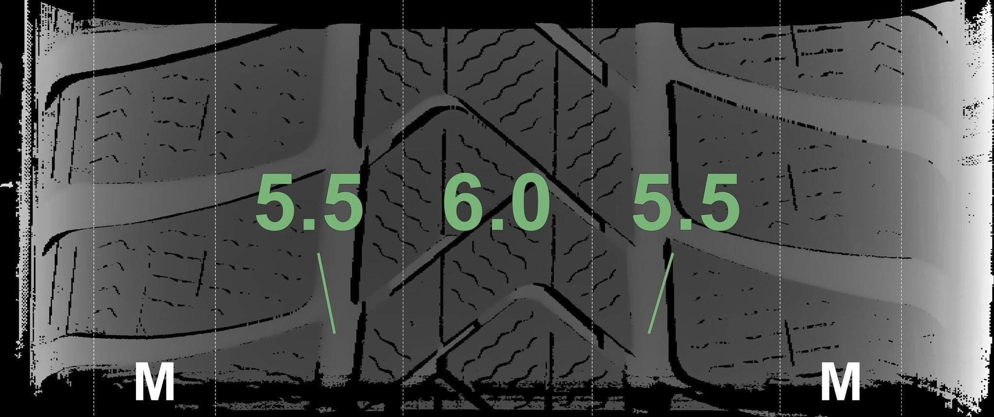 | Zustand | Profiltiefe | DOT | Vorderachse Rechts | Gebraucht | 5,5 mm | 3621 |