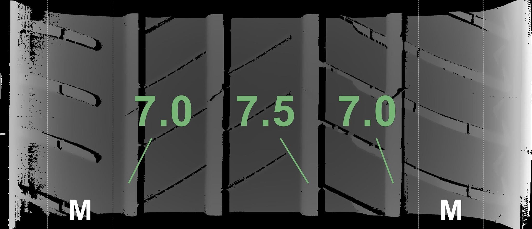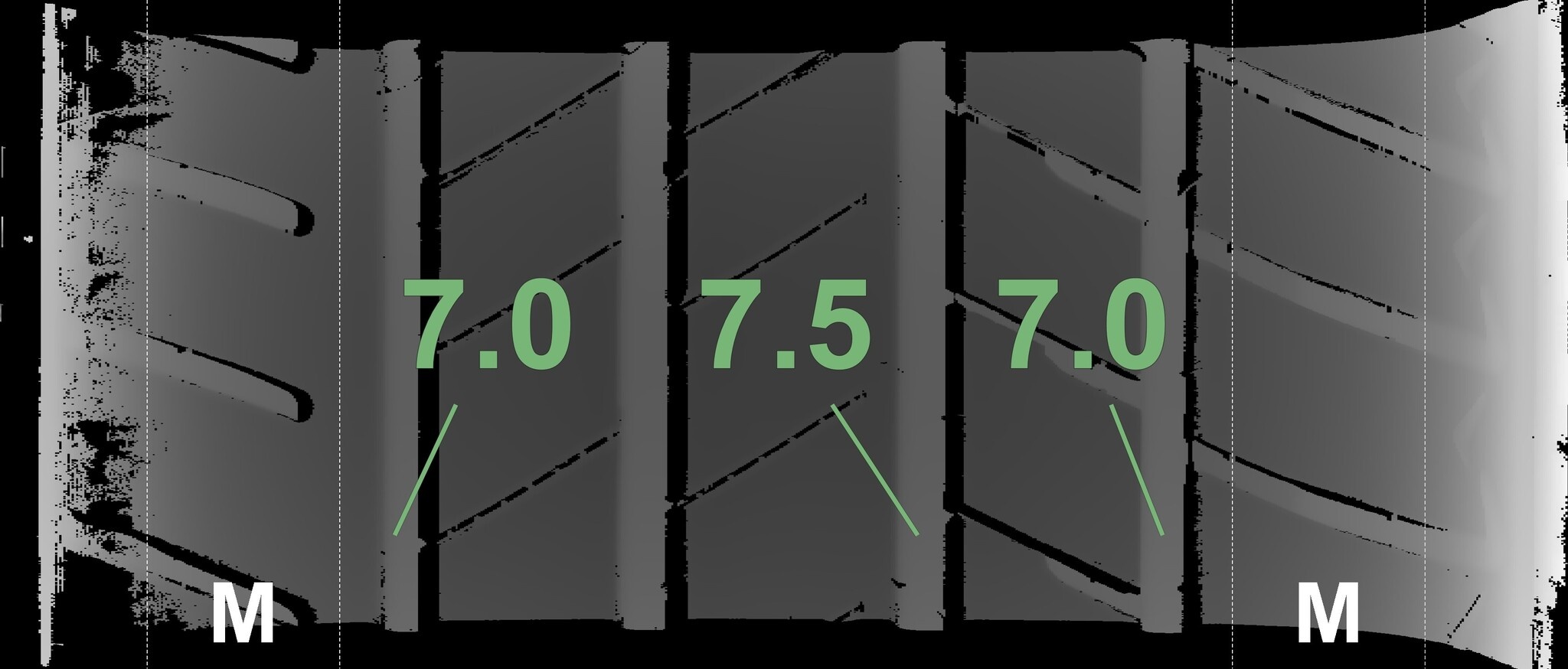 Die gemessenen Profiltiefen und Details zu den Felgen sind oben abgebildet.