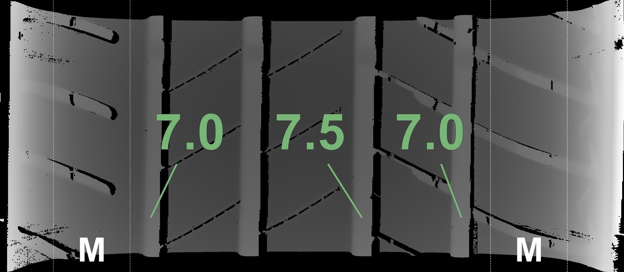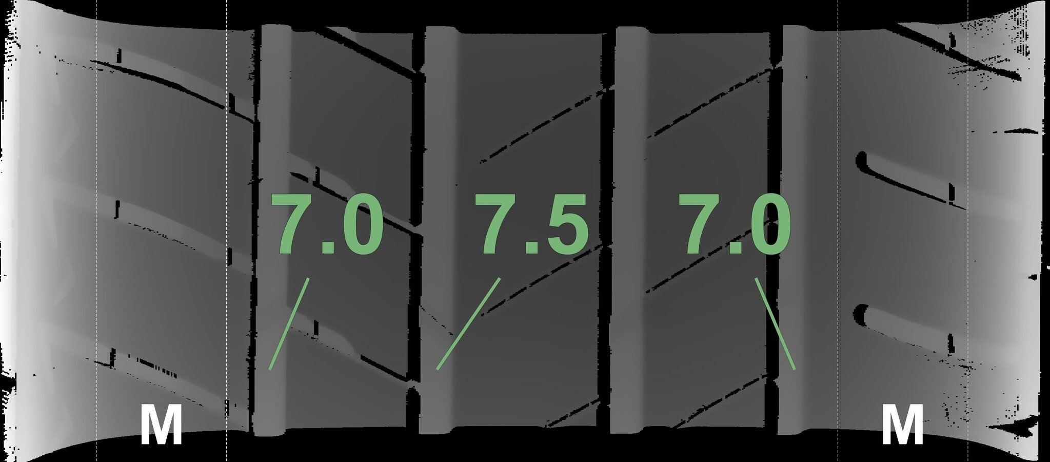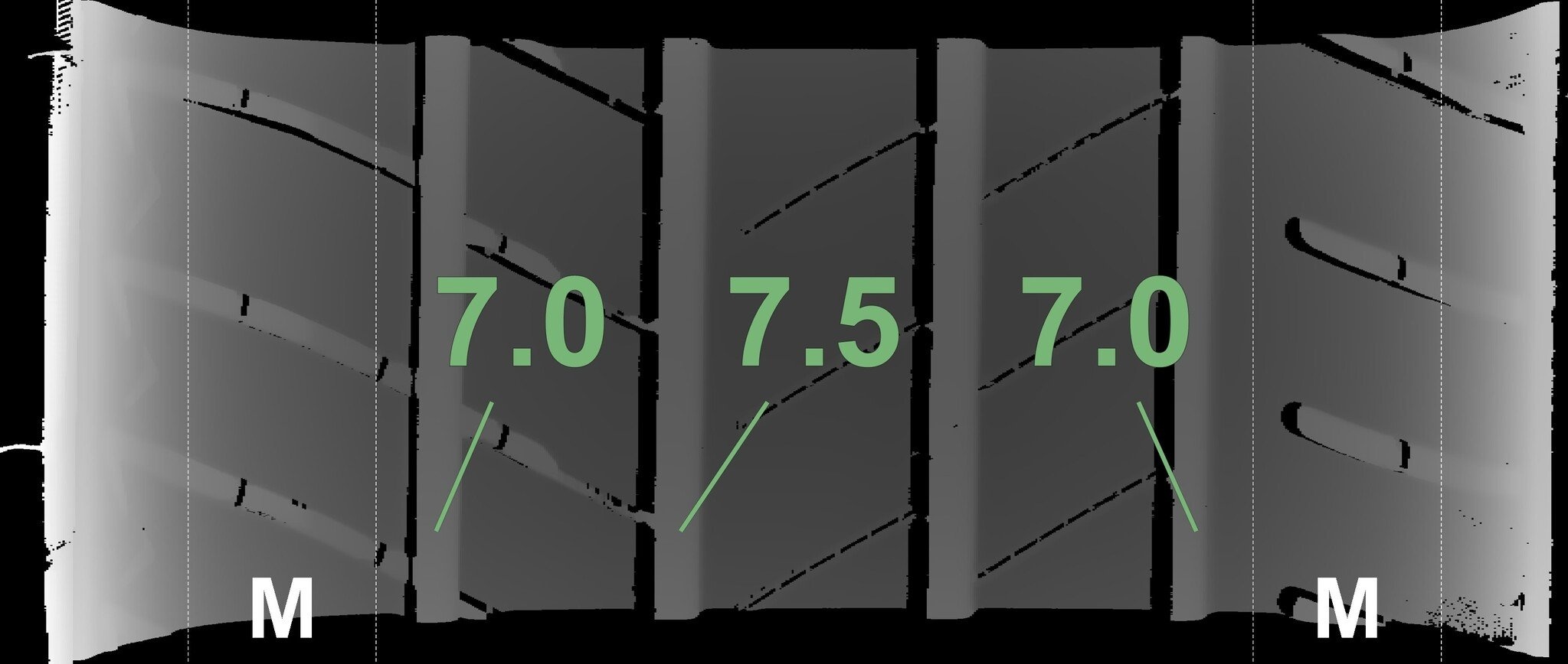 Die gemessenen Profiltiefen und Details zu den Felgen sind oben abgebildet.