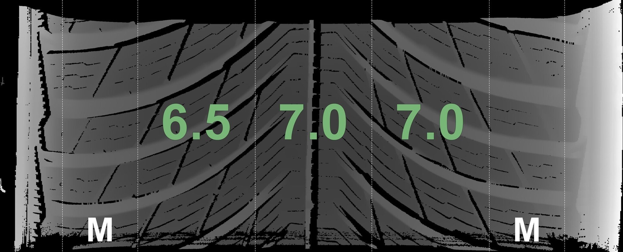 Die gemessenen Profiltiefen und Details zu den Felgen sind oben abgebildet.