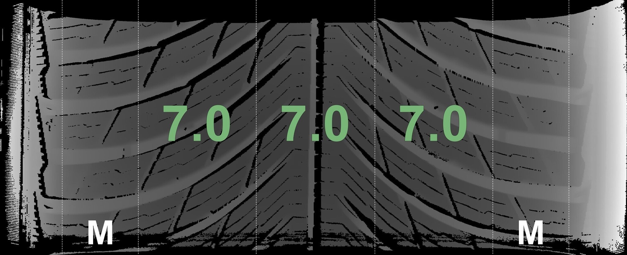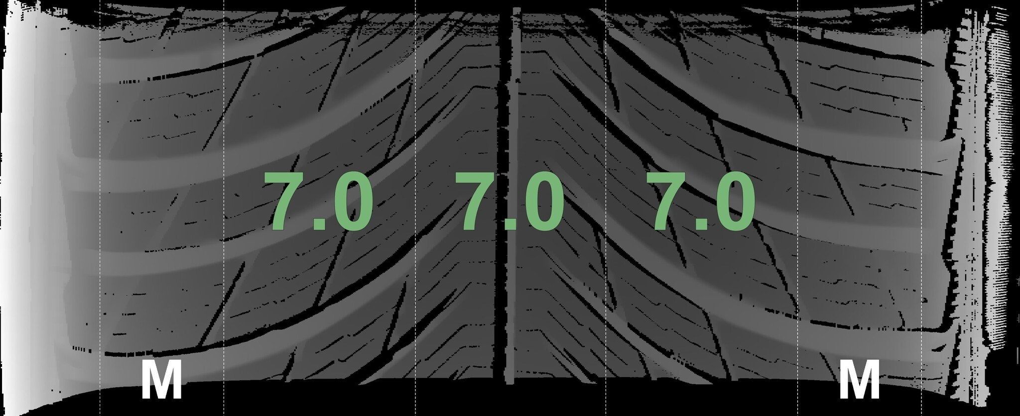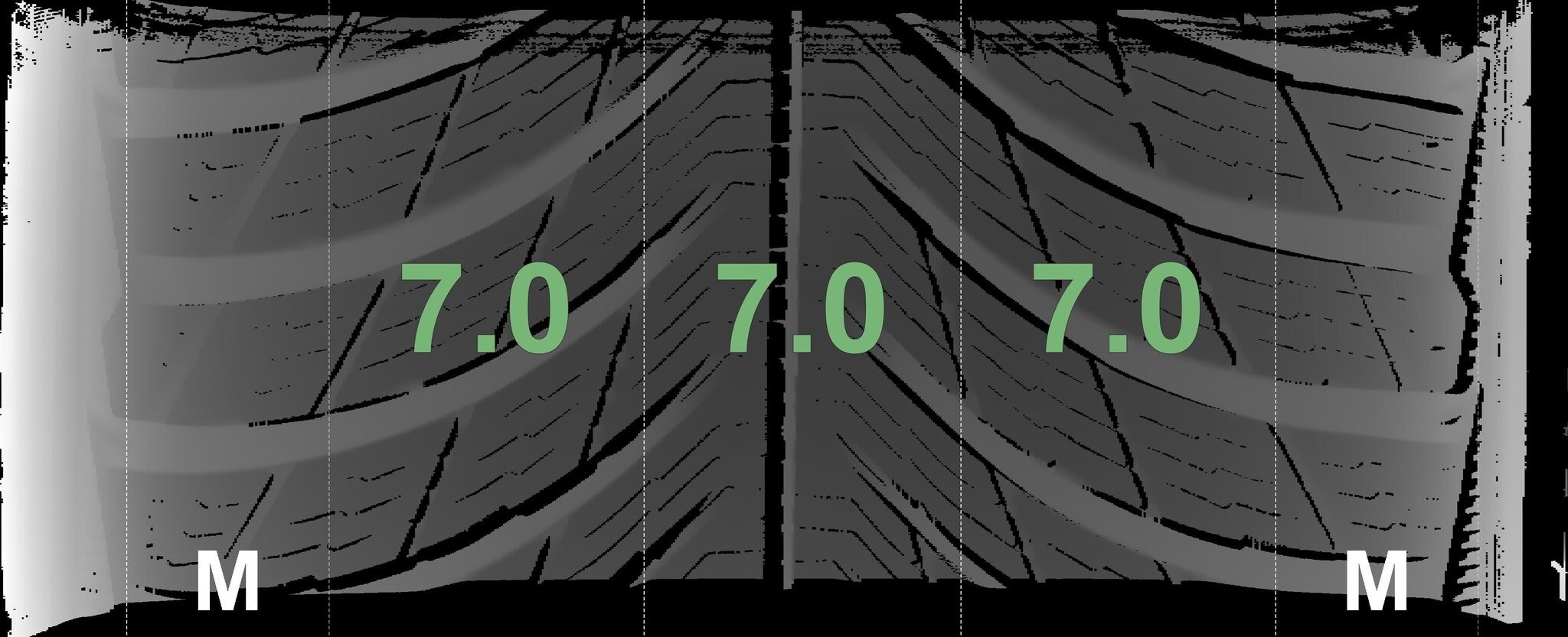 | Zustand | Profiltiefe | DOT | Vorderachse Links | Gebraucht | 7,0 mm | 2424 |