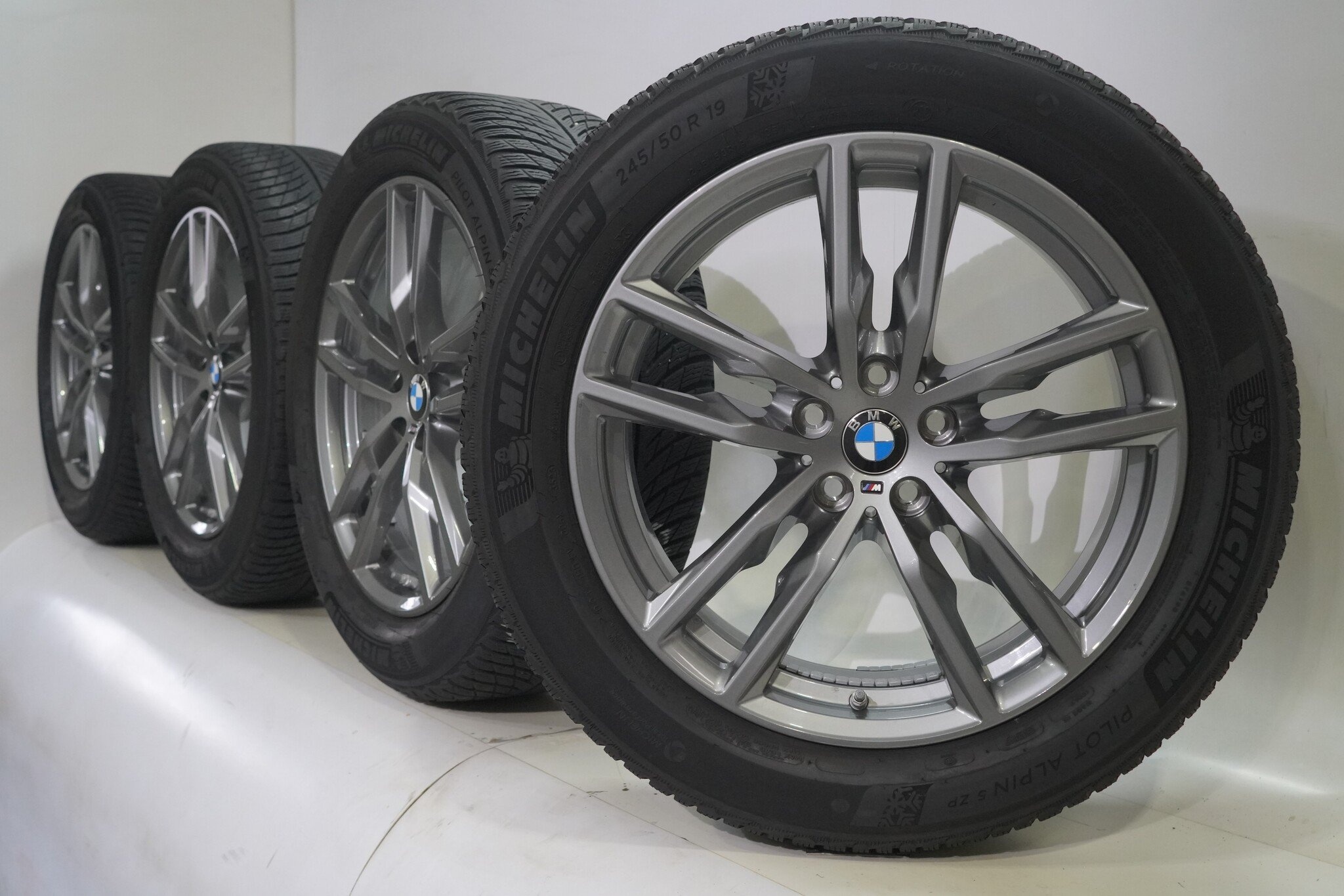 Originaler Radsatz von BMW, Styling 698M, 19 Zoll Felgen mit Michelin Pilotalpin 5 Runflat Winterkompletträdern. Diese Felgen sind Original-Felgen der Marke BMW und geeignet für: BMW X3 X4 G01 G02.