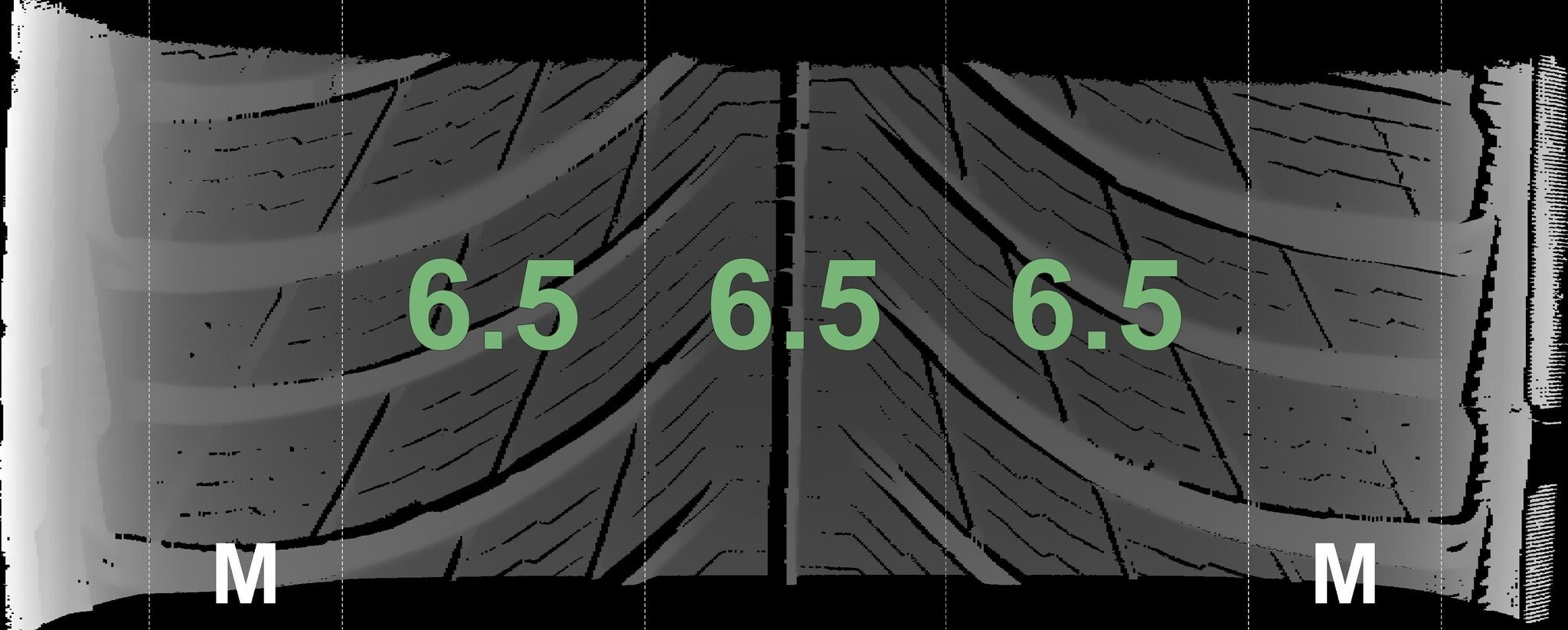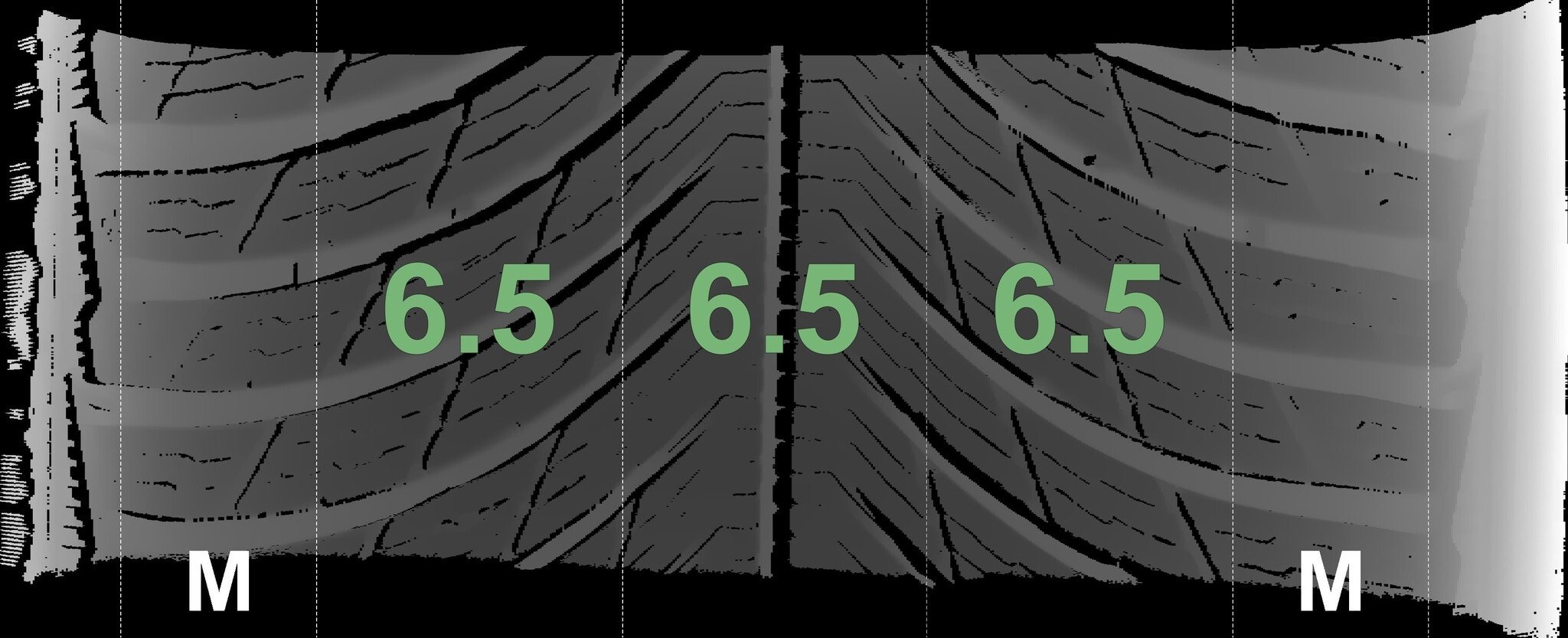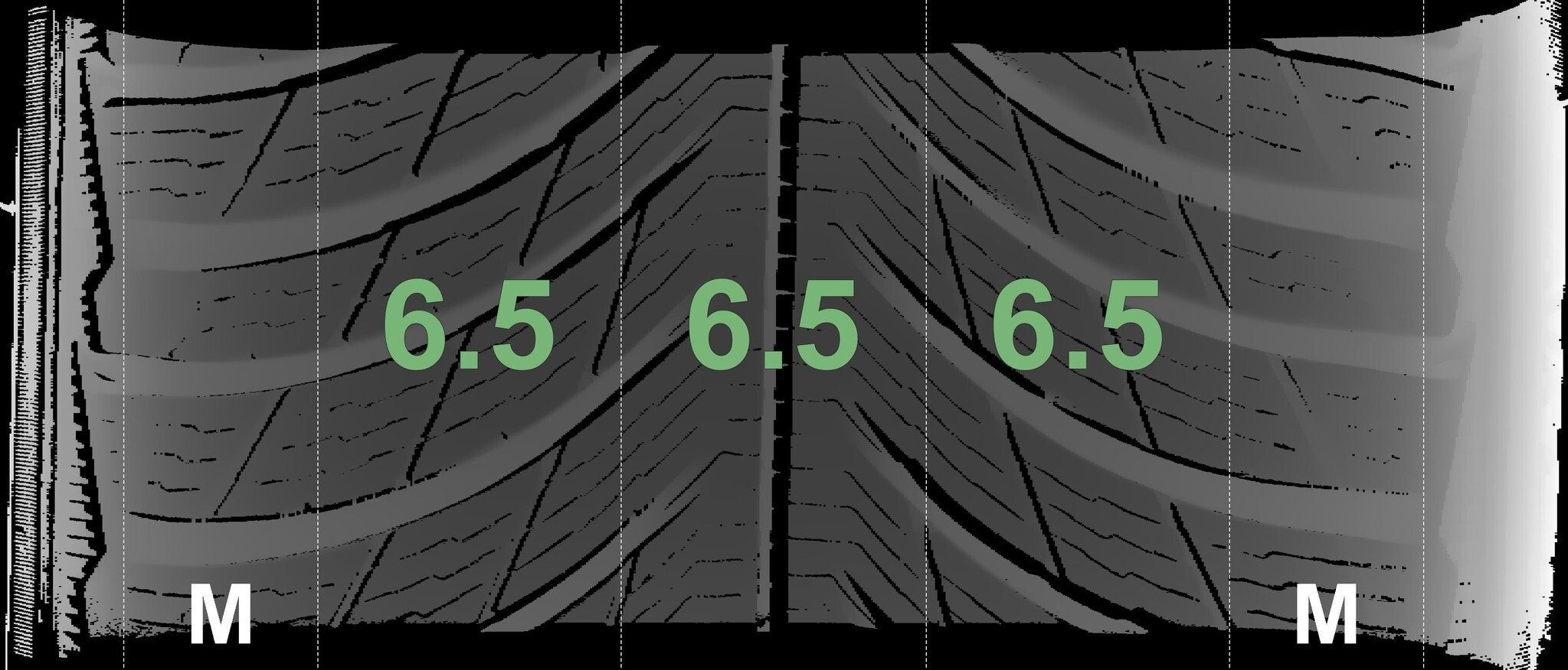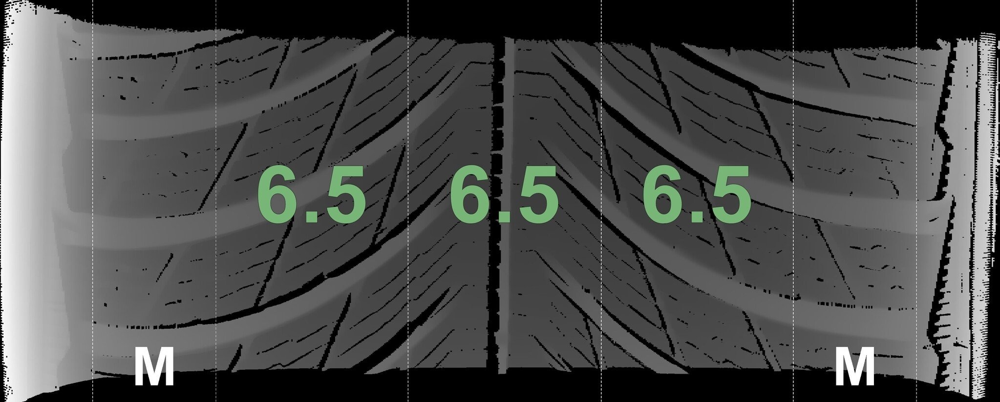 Die gemessenen Profiltiefen und die Details der Felgen sind oben angegeben.