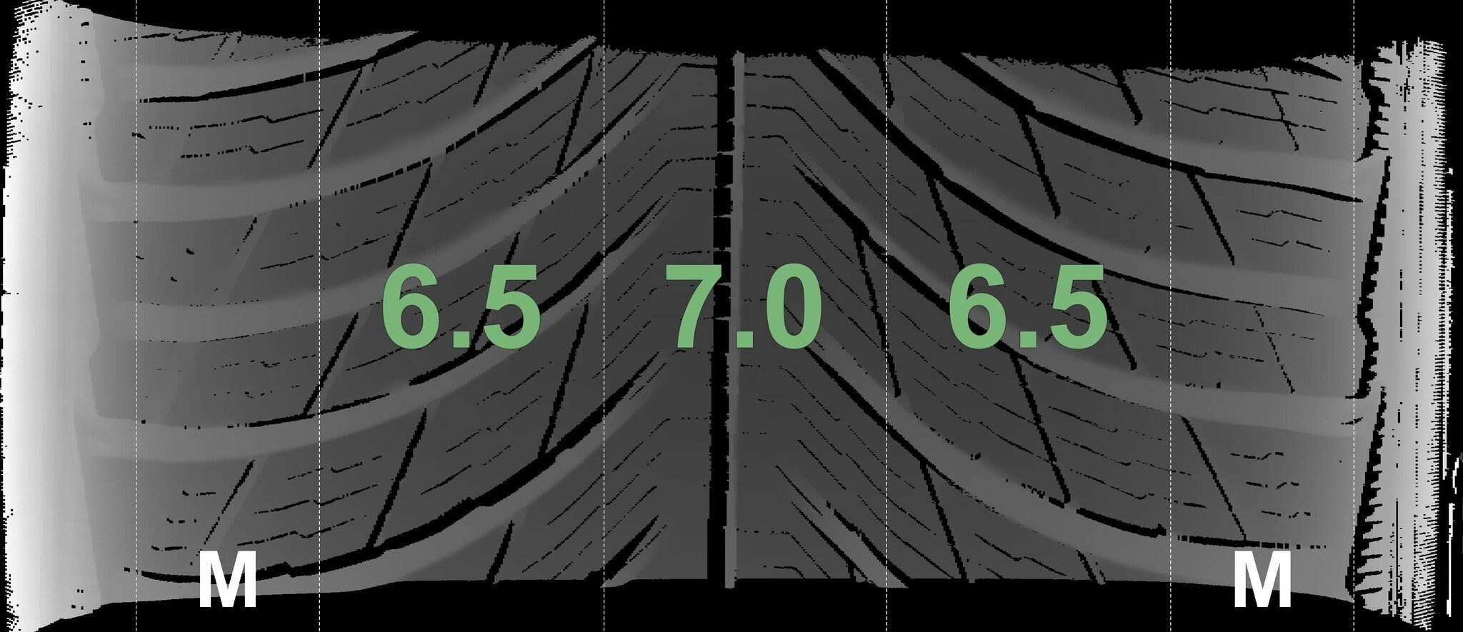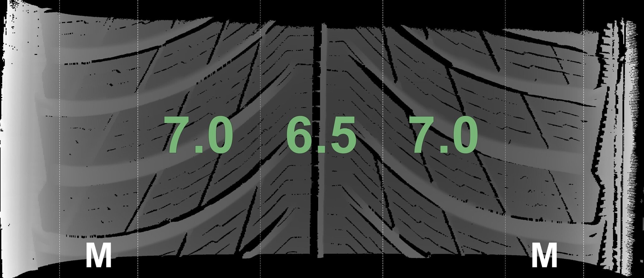 Die gemessenen Profiltiefen und Details zu den Felgen sind oben abgebildet.