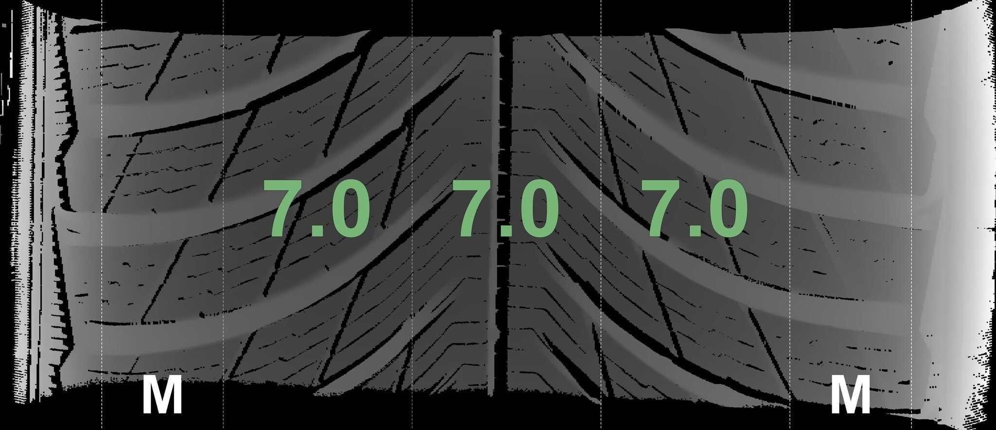 | Zustand | Profiltiefe | DOT | Vorderachse Rechts | Gebraucht | 7,0 mm | 4020 |