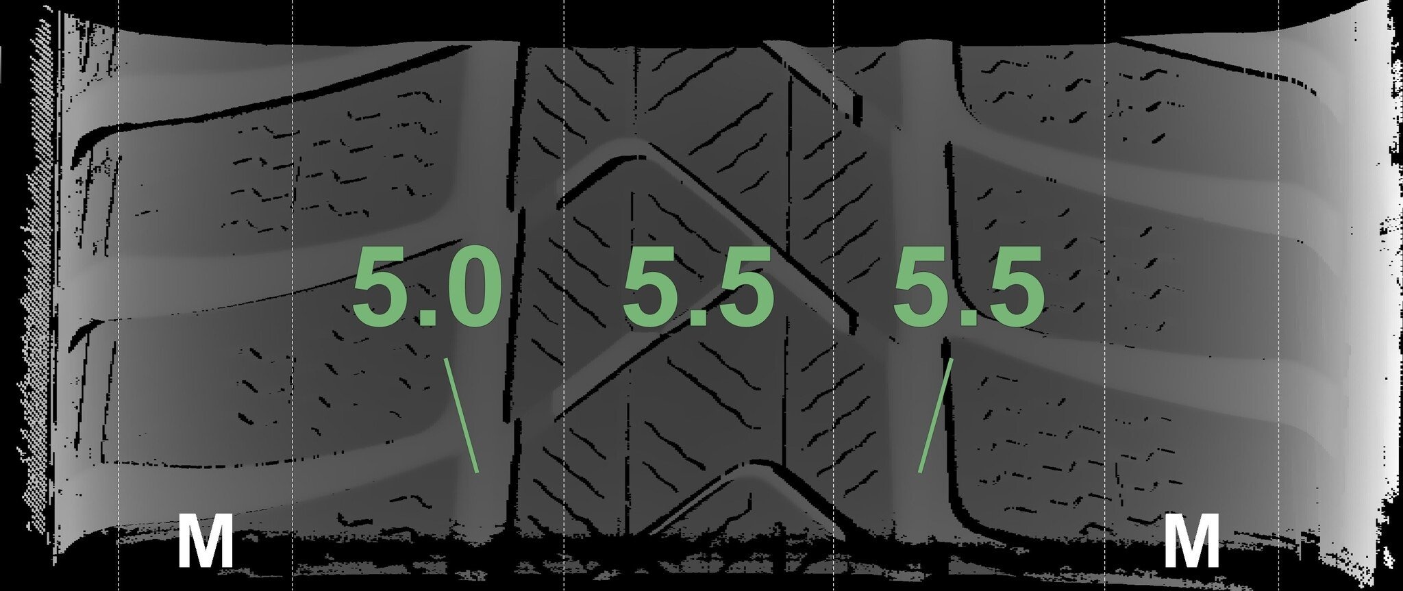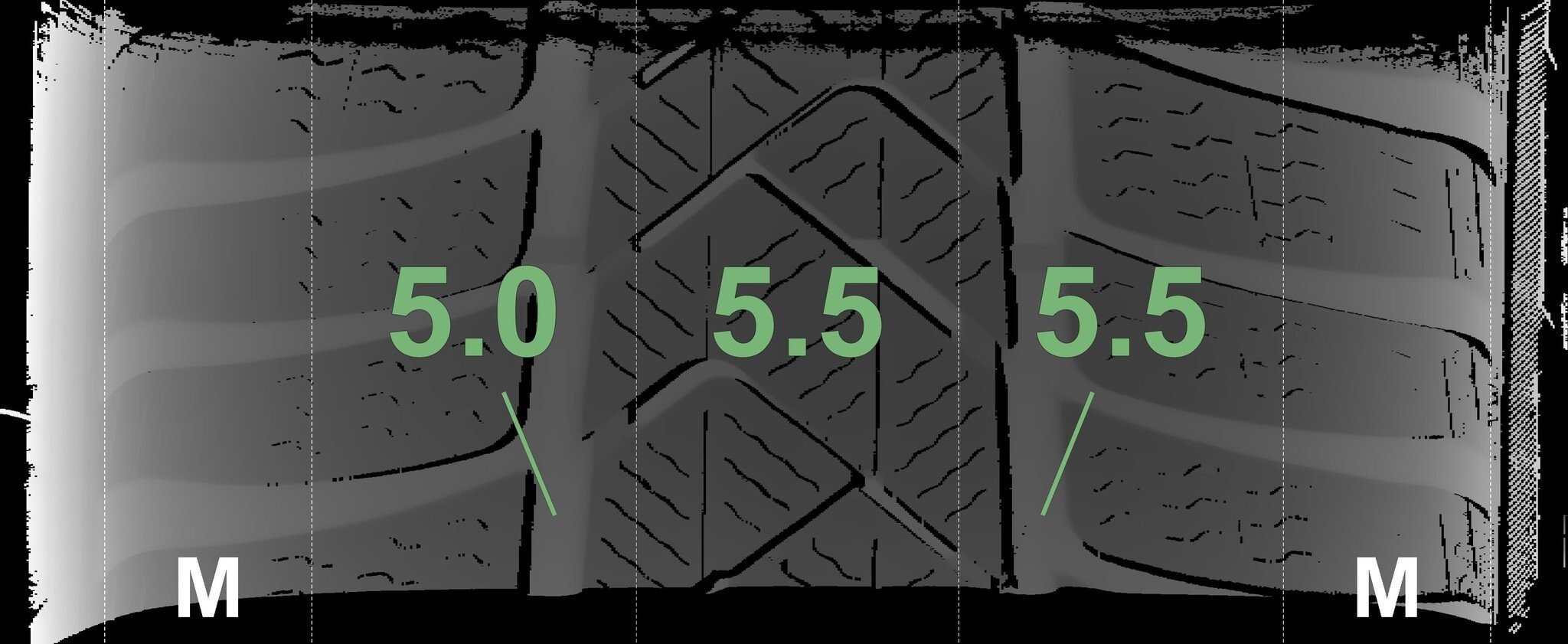 Die gemessenen Profiltiefen und die Details der Felgen sind oben angegeben.