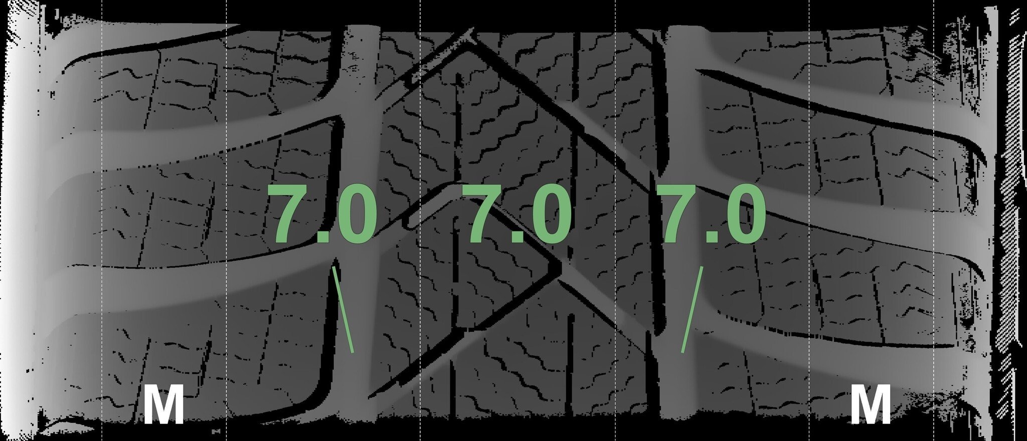 Die gemessenen Profiltiefen und die Details der Felgen sind oben dargestellt.