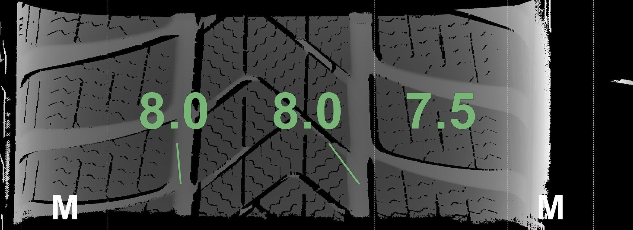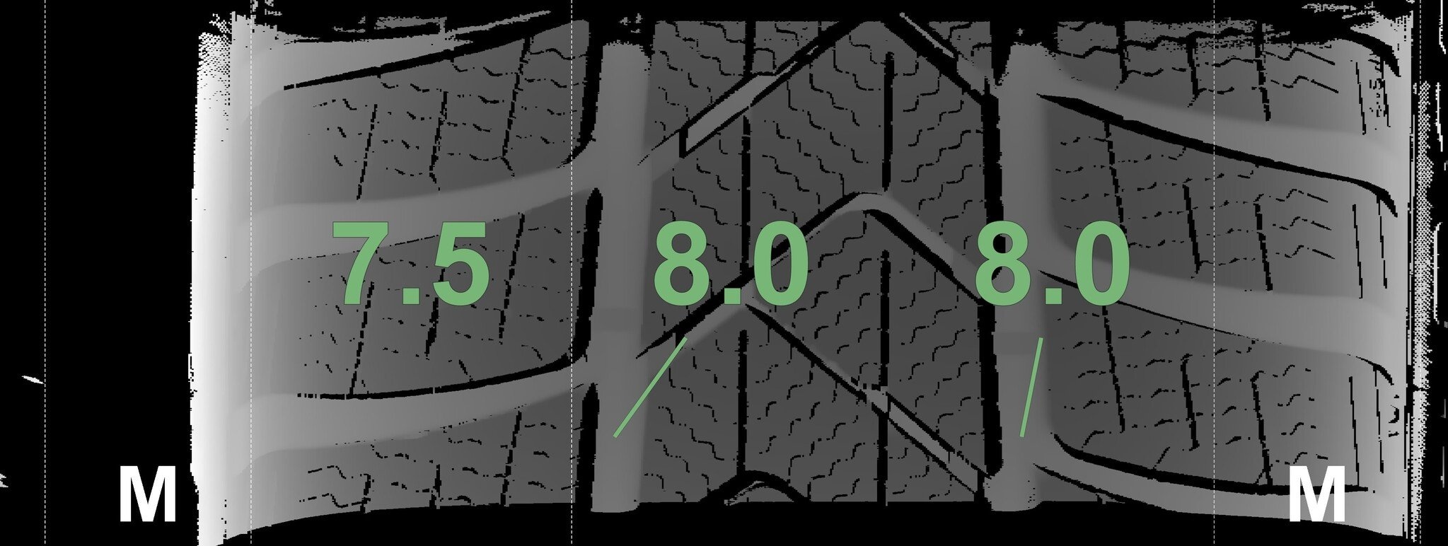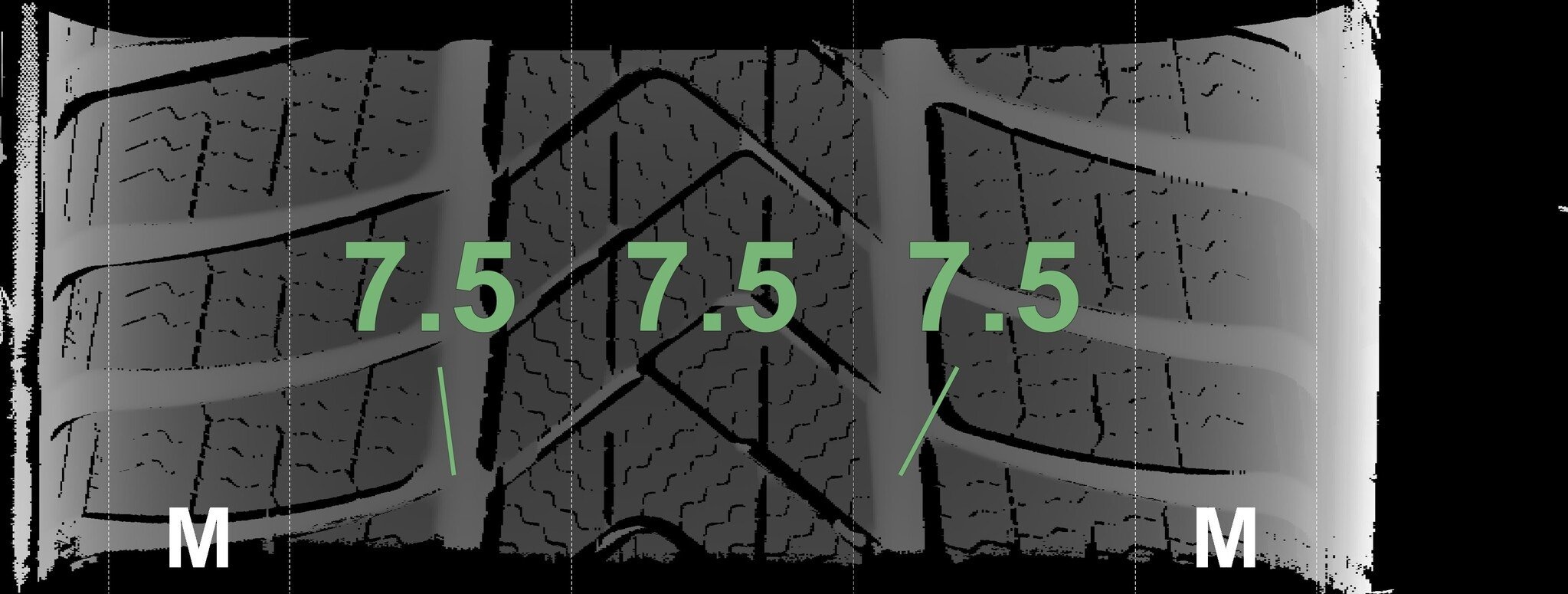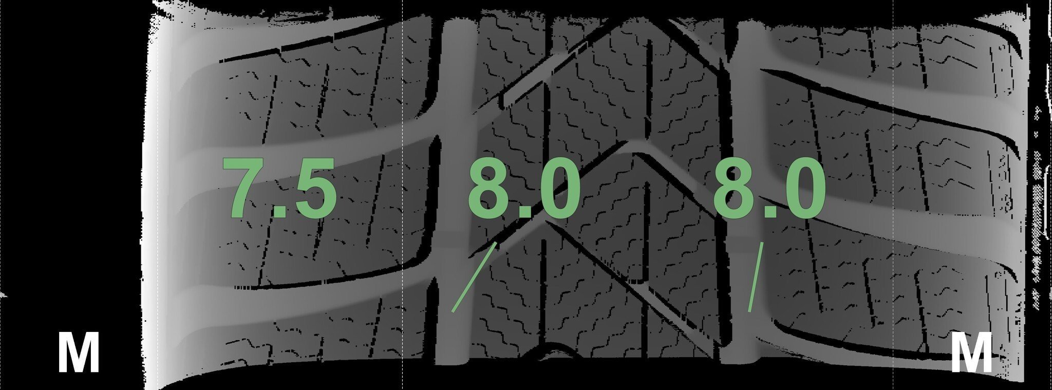 | Zustand | Profiltiefe | DOT | Vorderachse Rechts | Neu | 7.5 mm | 4225 |