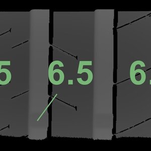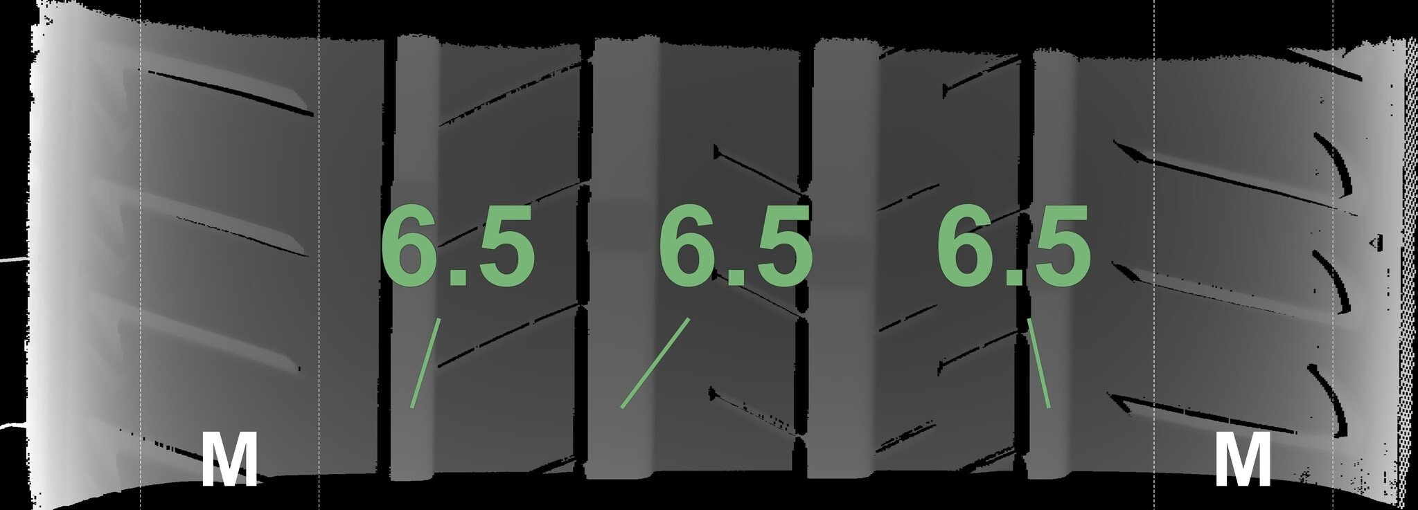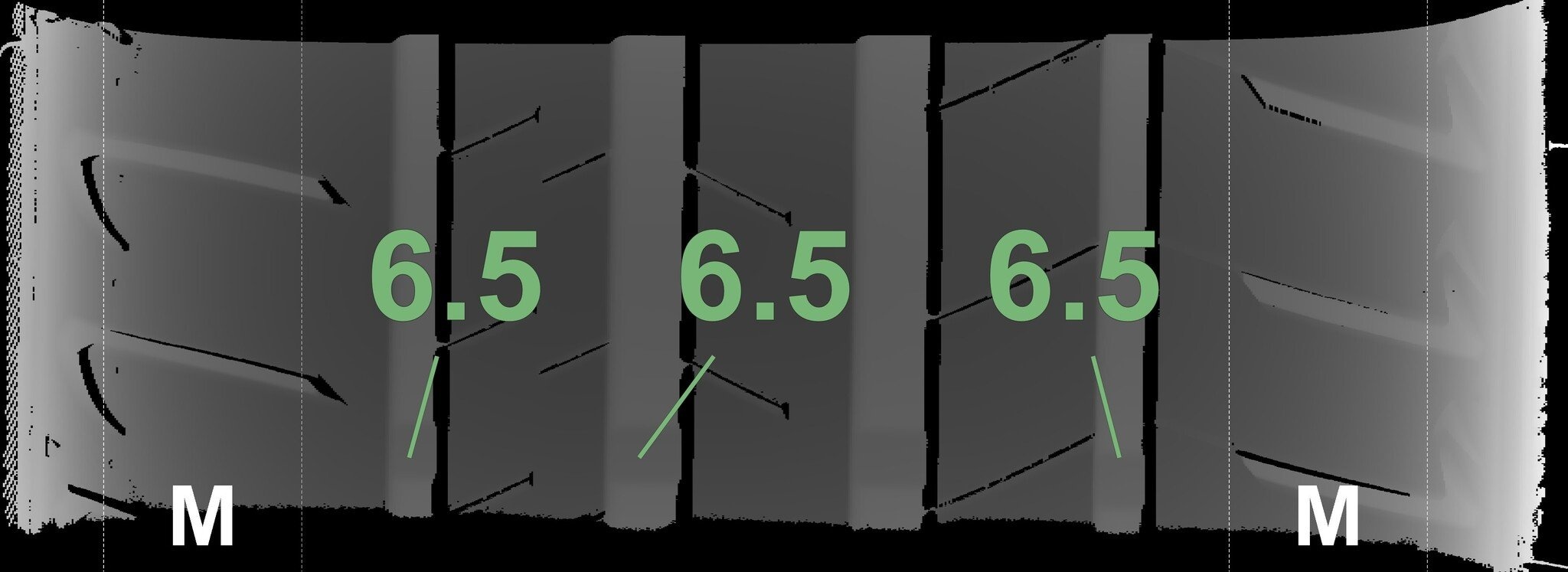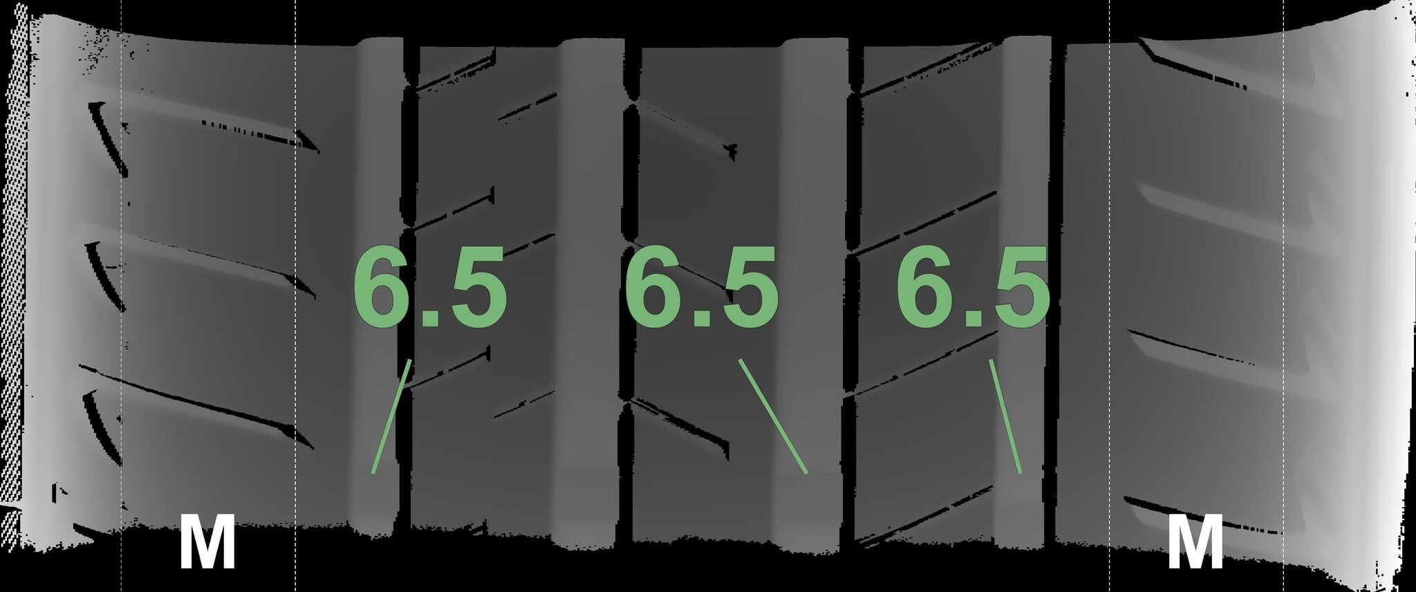 Die gemessenen Profiltiefen und die Details der Felgen sind oben angezeigt.