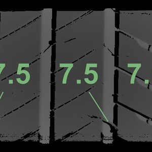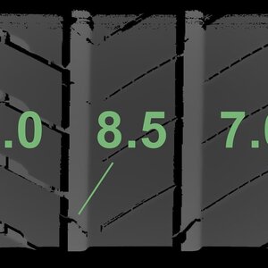 | Zustand | Profiltiefe | DOT | Vorderachse Rechts | Demo-Noppen noch sichtbar | 7.2 mm | 4723 |