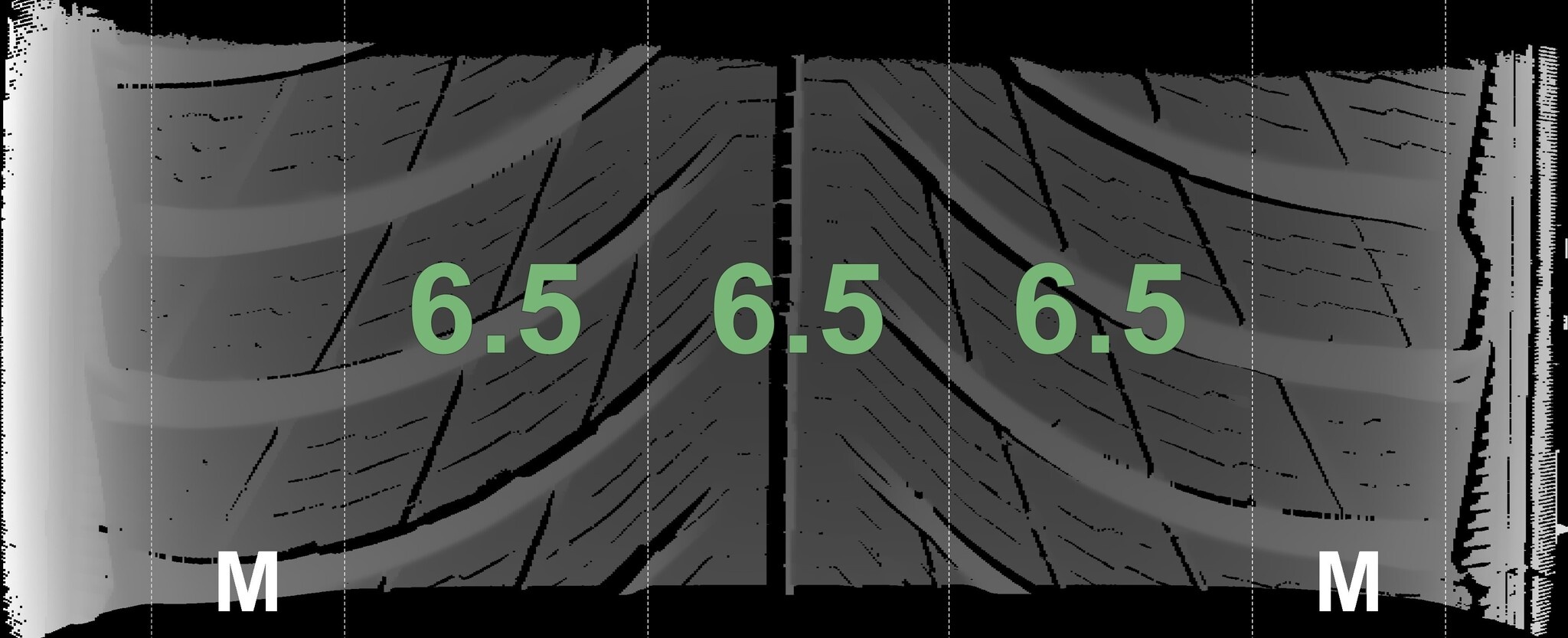 | Zustand | Profiltiefe | DOT | Vorderachse Links | Gebraucht | 6.5 mm | 2523 |