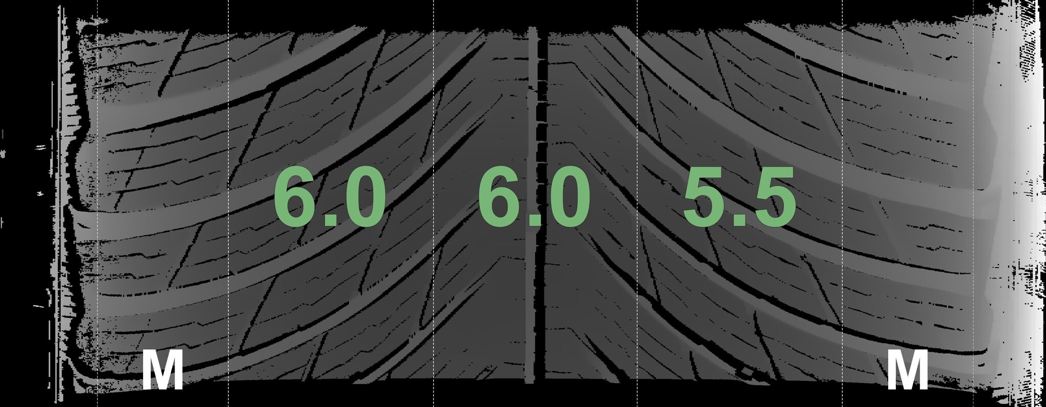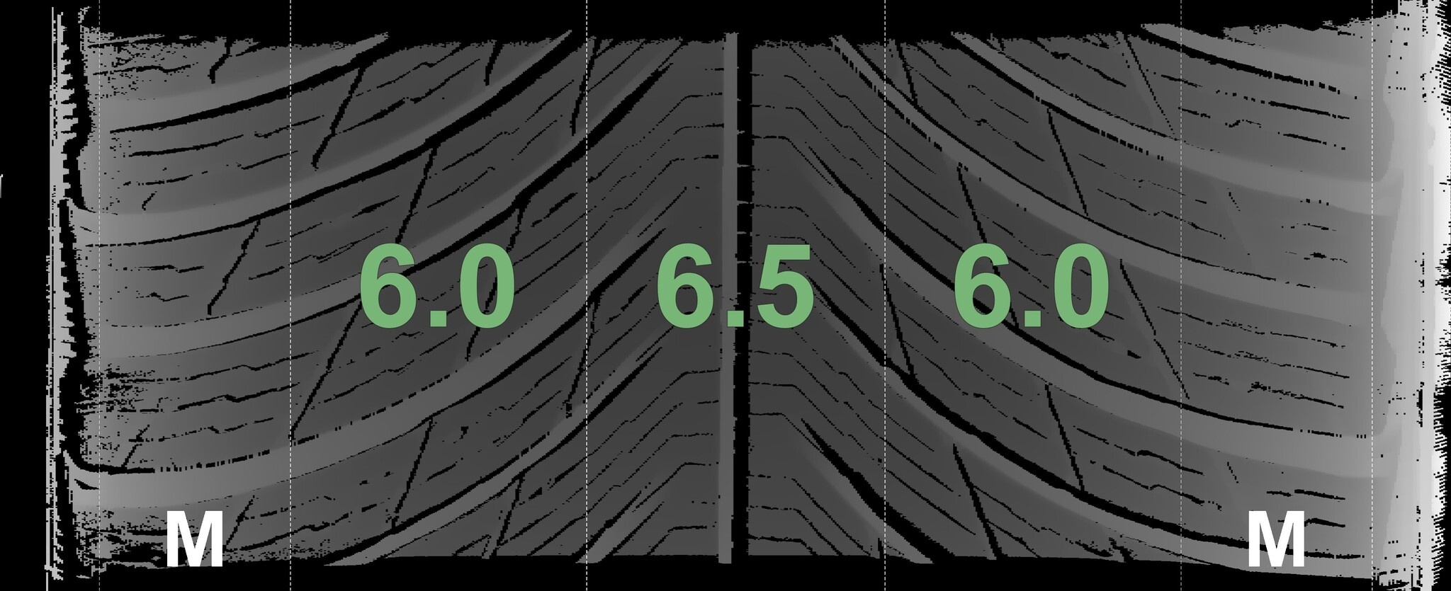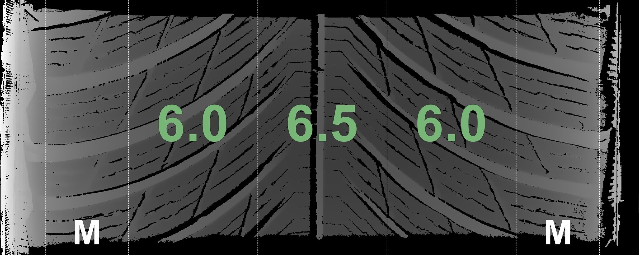 Die gemessenen Profiltiefen und Details zu den Felgen sind oben abgebildet.