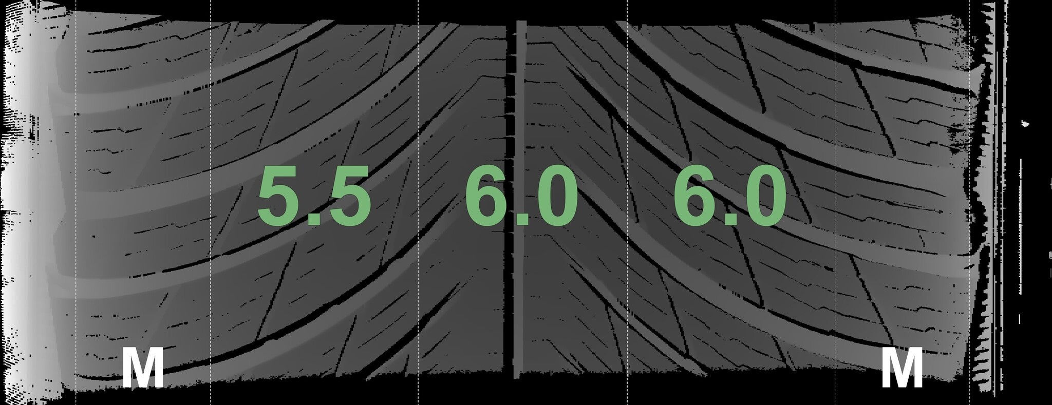 Zustand | Profiltiefe | DOT | Hinterachse Links | Gebraucht | 5,5 mm | 1321 |