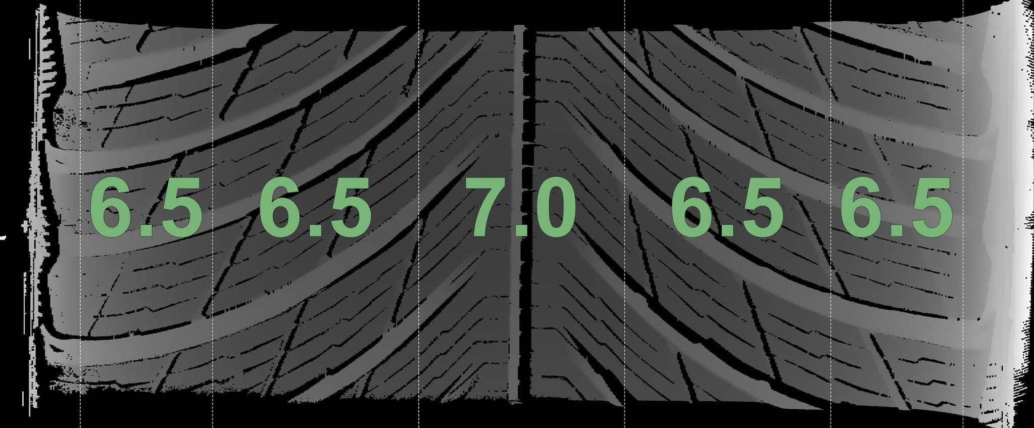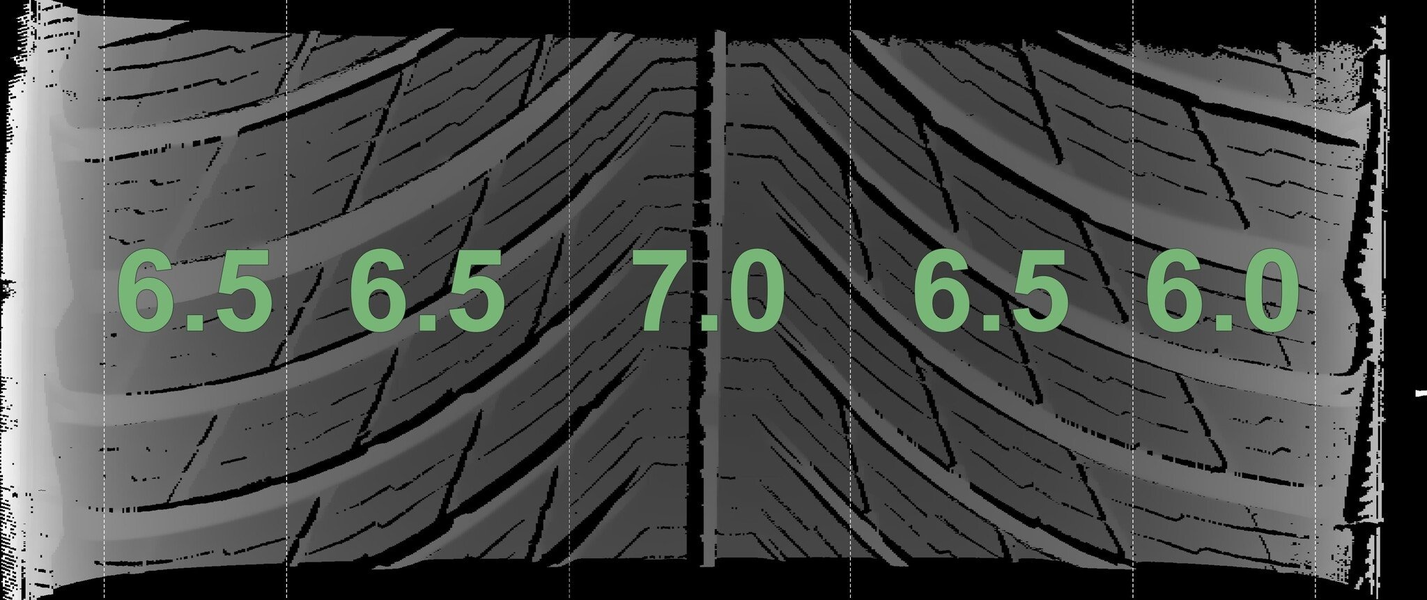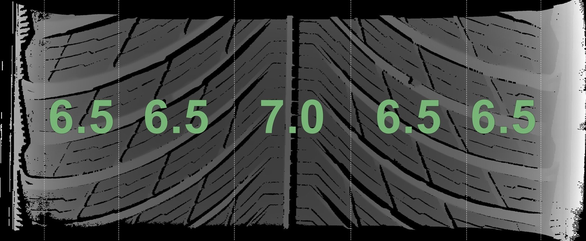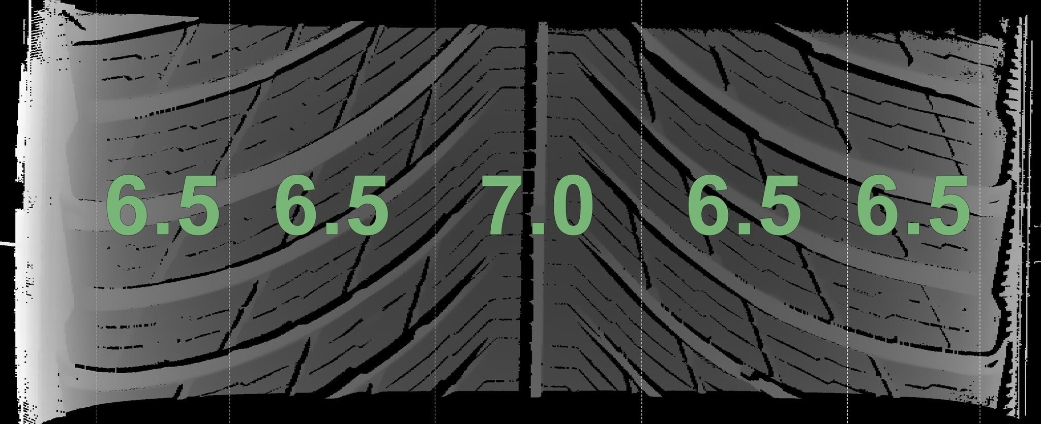 Die gemessenen Profiltiefen und Details zu den Felgen sind oben abgebildet.
