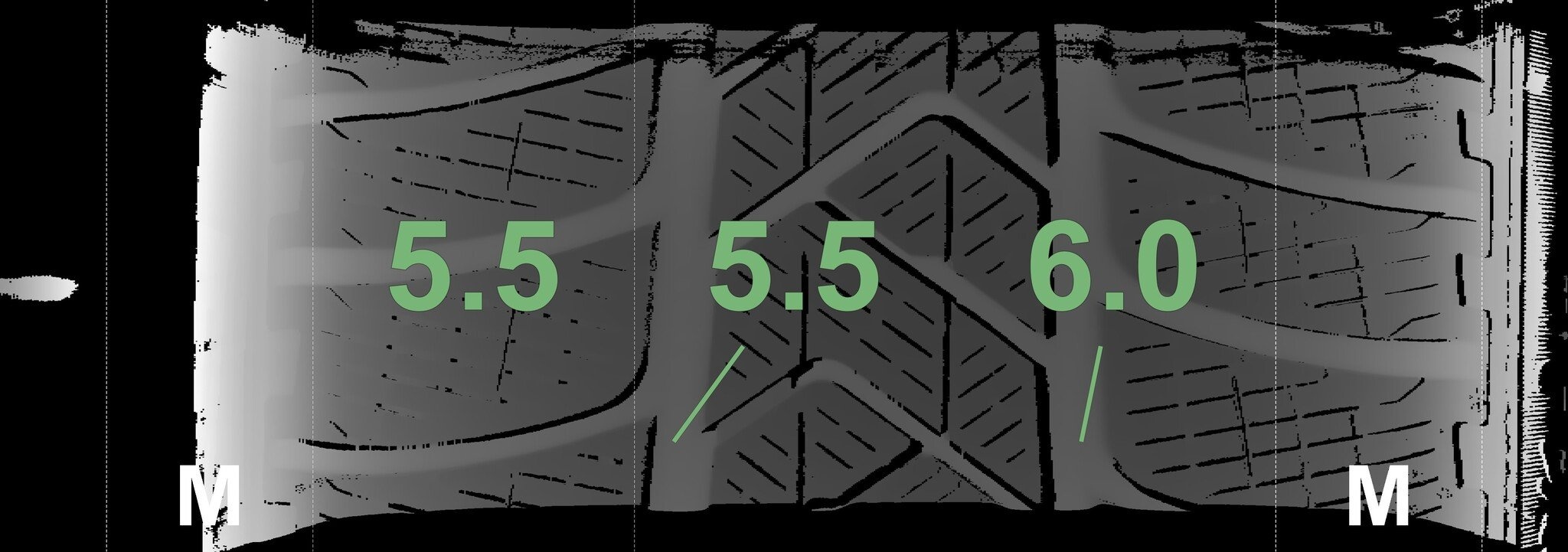 | Zustand | Profiltiefe | DOT | Hinterachse Links | Gebraucht | 5,5 mm | 2722 |