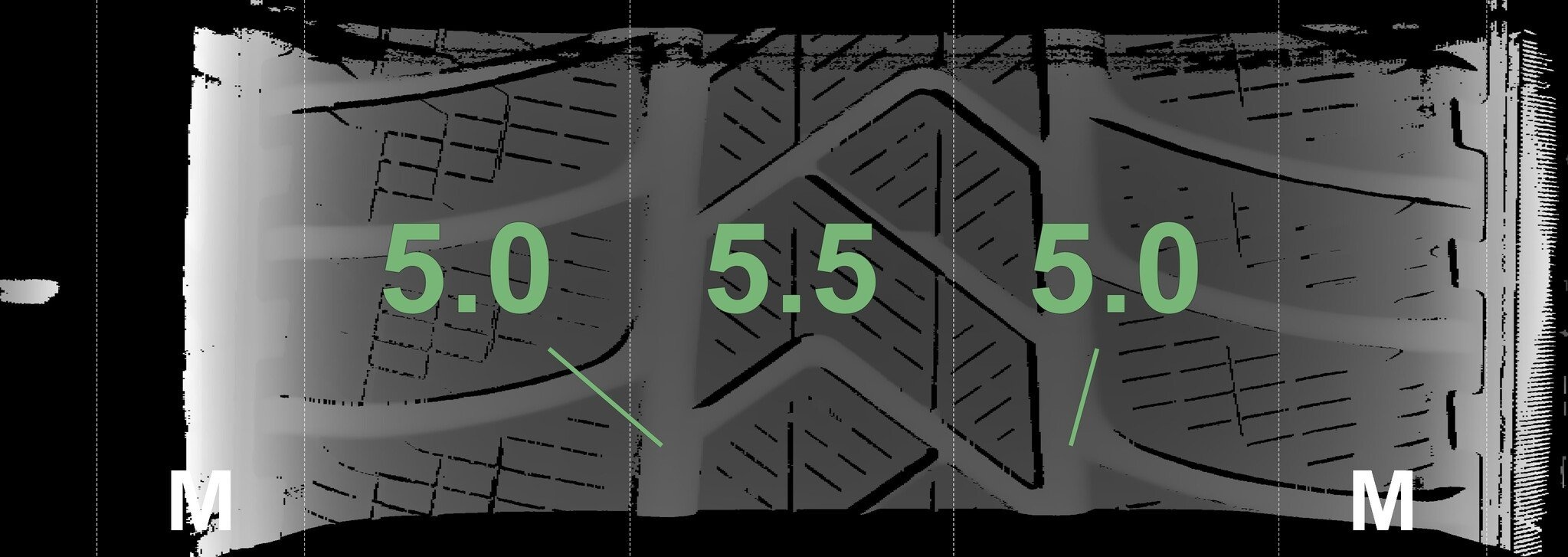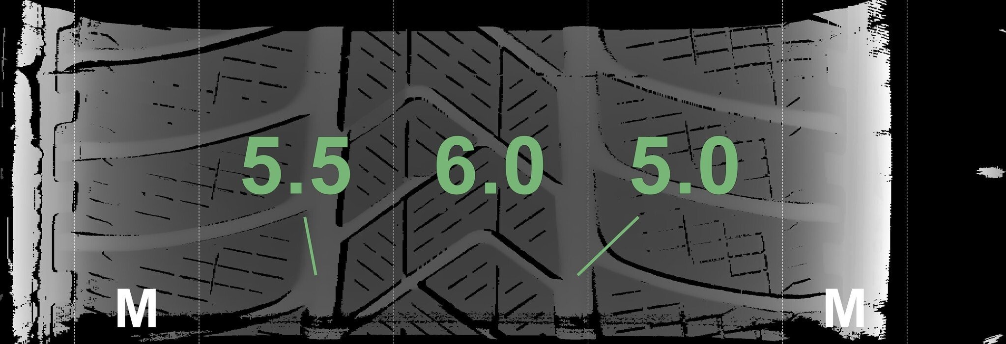 Die gemessenen Profiltiefen und die Details der Felgen sind oben dargestellt.