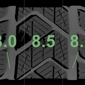 Die gemessenen Profiltiefen und die Details der Felgen sind oben angegeben.