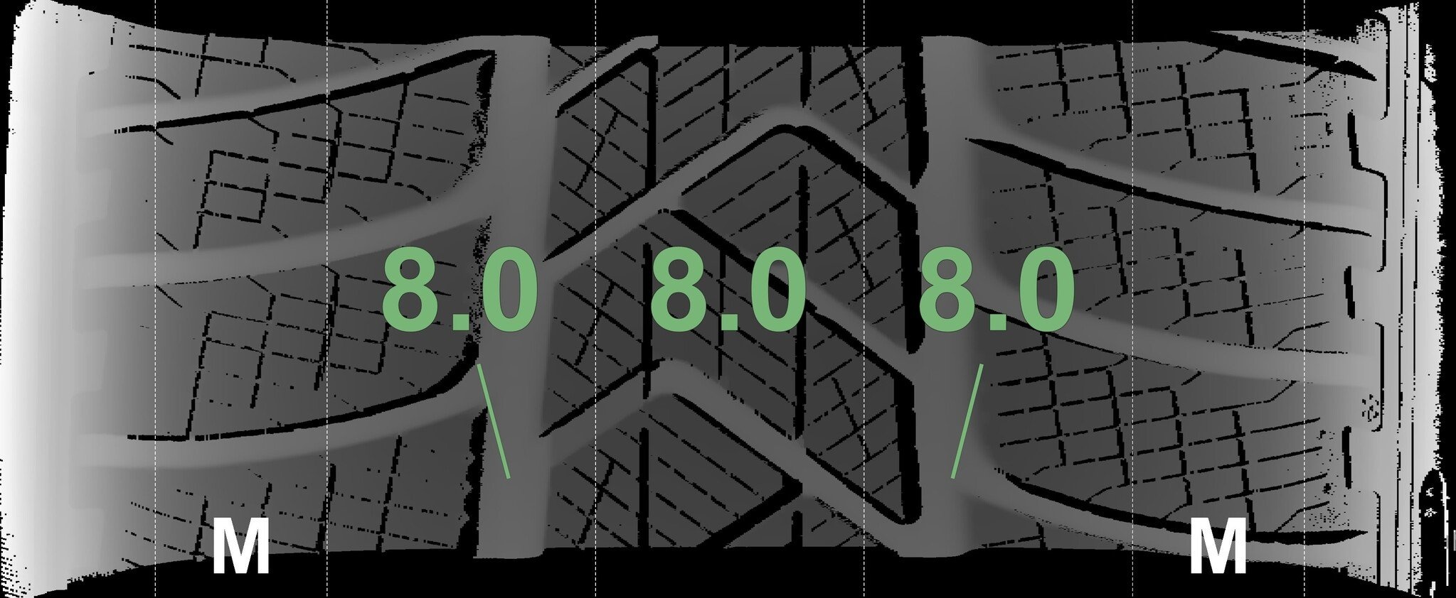 | Zustand | Profiltiefe | DOT | Vorderachse Rechts | Neu | 8.0 mm | 2825 |