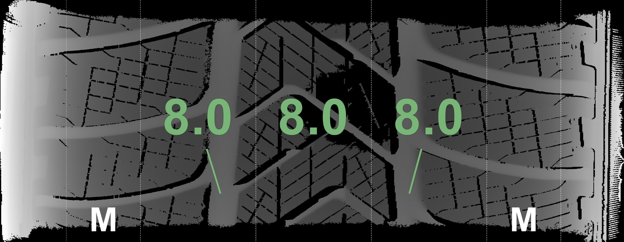 | Zustand | Profiltiefe | DOT | Vorderachse Links | Neu | 8.0 mm | 2925 |