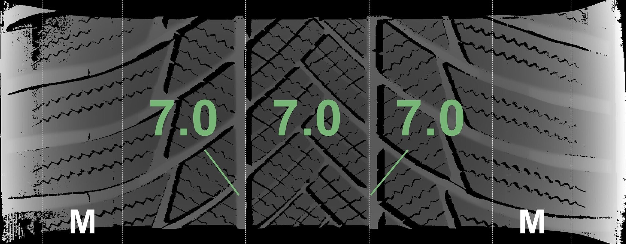 | Zustand | Profiltiefe | DOT | Hinterachse Rechts | Gebraucht | 7,0 mm | 1720 |